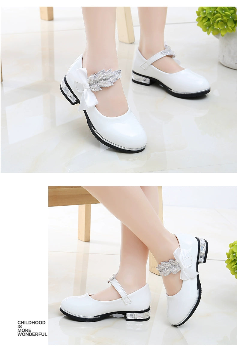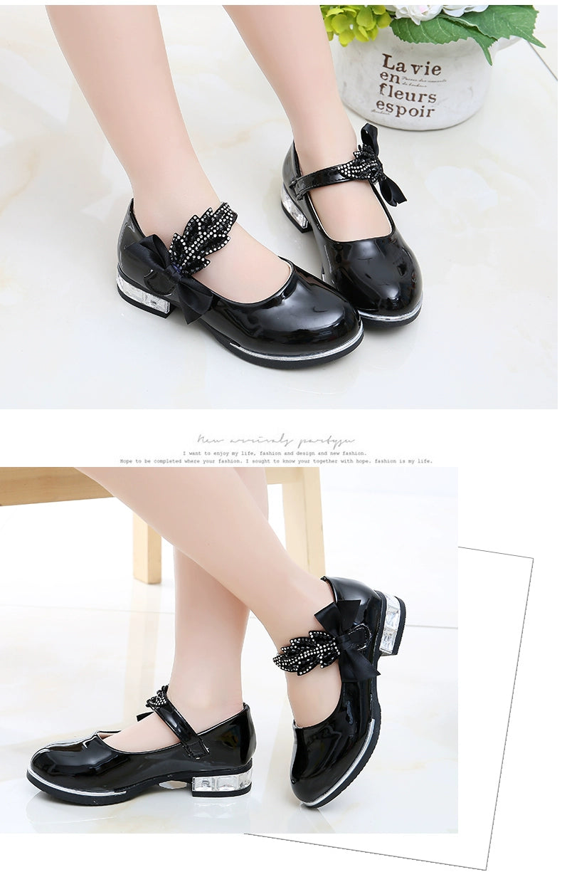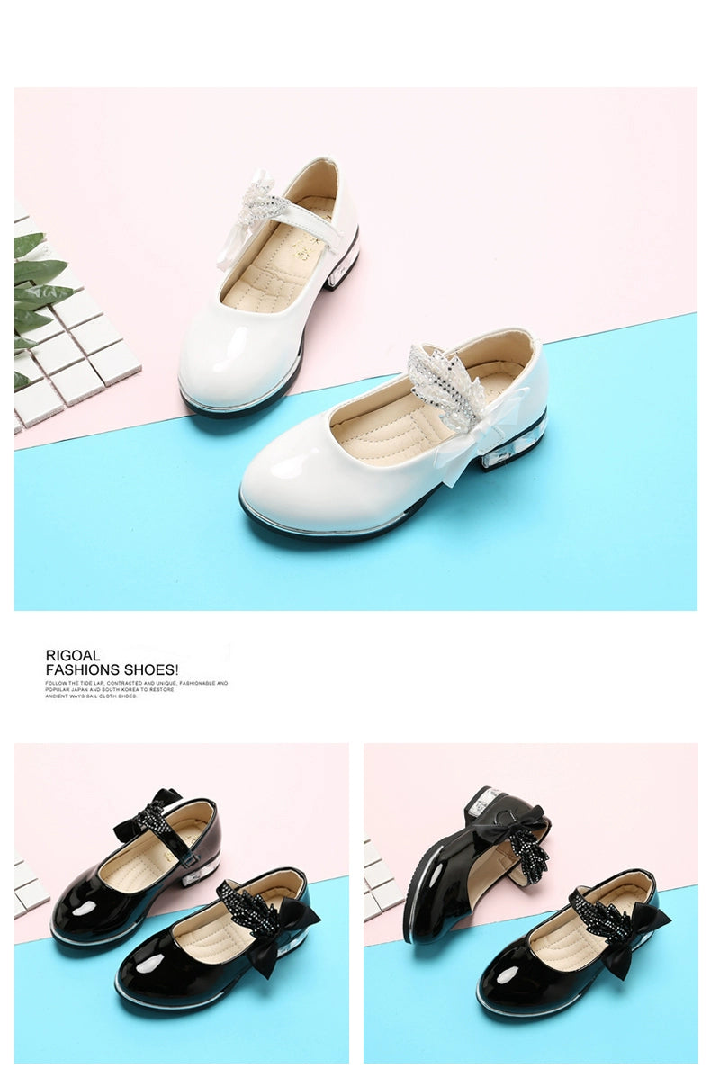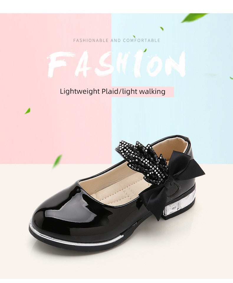 Girl Princess Little Leather Shoes 2025 New Arrival Kids Black Crystal Student Performance Flats Children's Soft Sole Children's Shoes