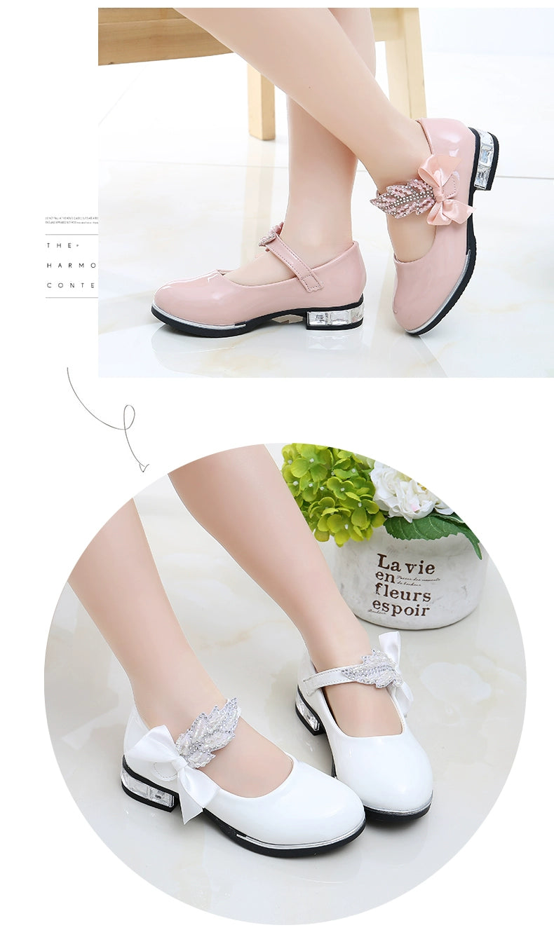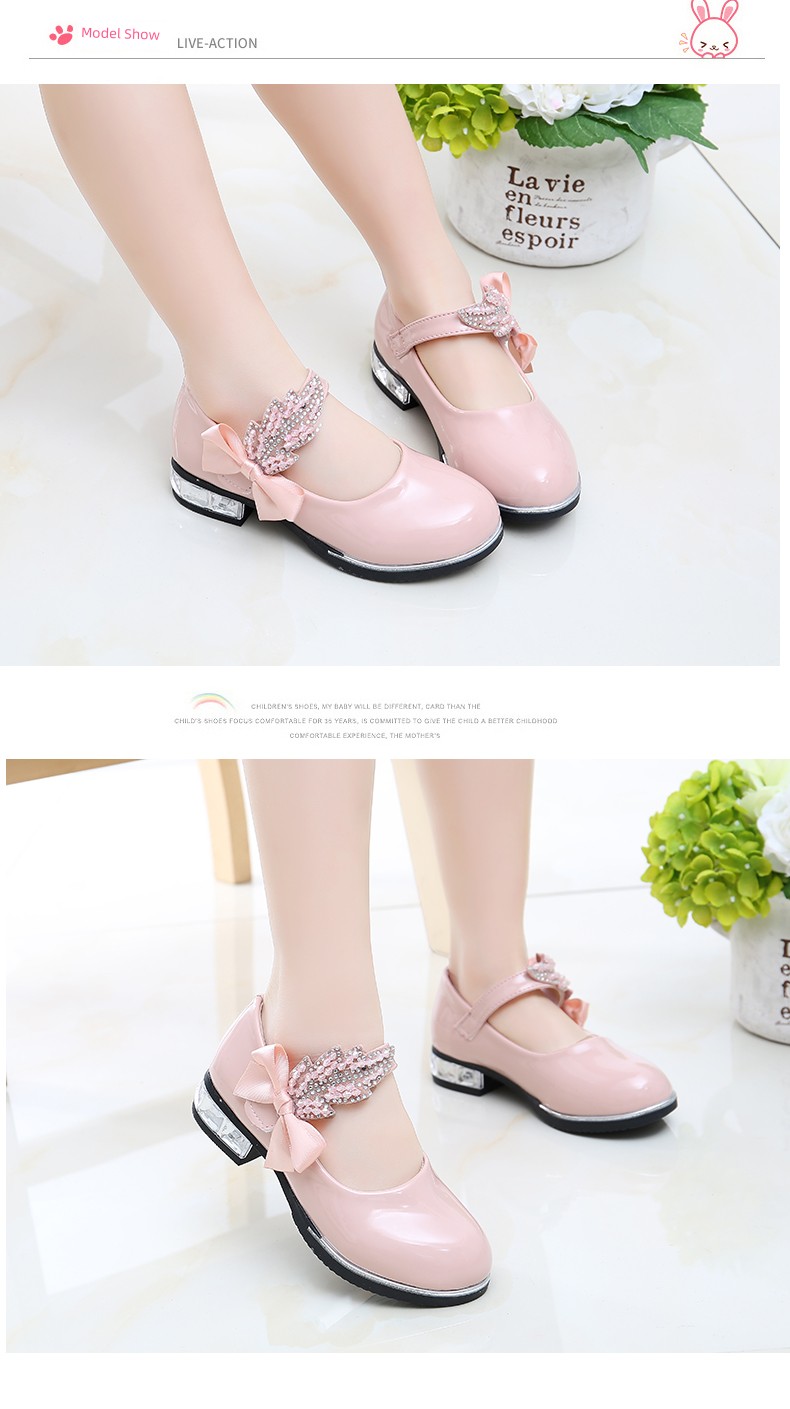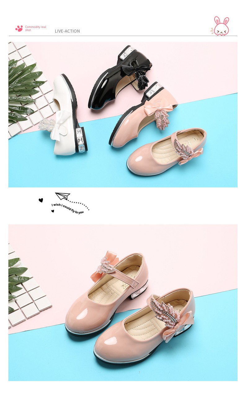 Girl Princess Little Leather Shoes 2025 New Arrival Kids Black Crystal Student Performance Flats Children's Soft Sole Children's Shoes