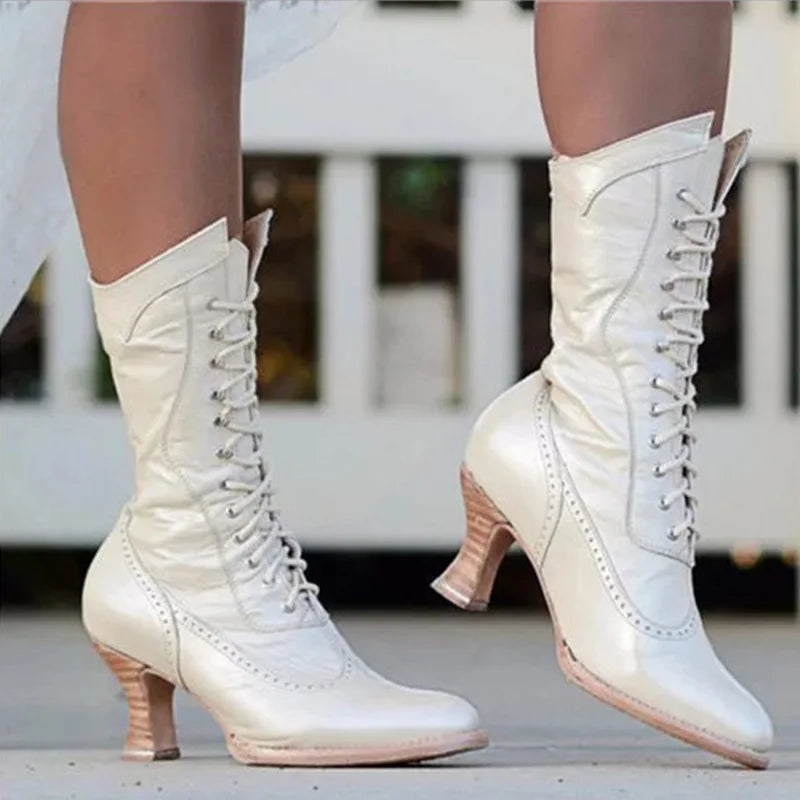Halloween British Style Punk Noble Women Retro Knight Boot Medieval PU Leather Ankle Boots Fashion Lady Cosplay High Heel Shoes