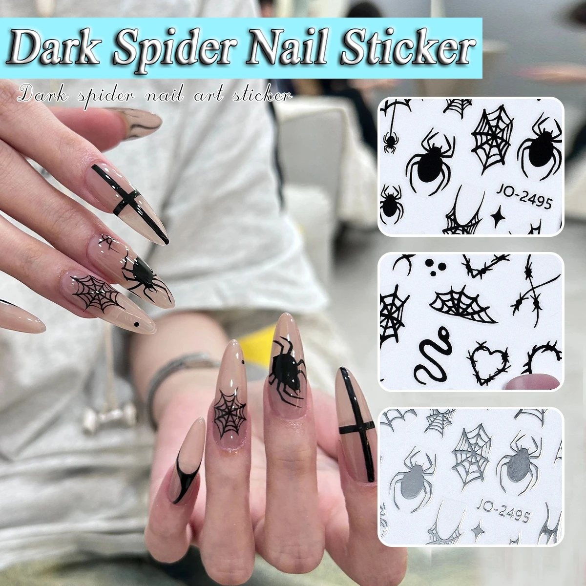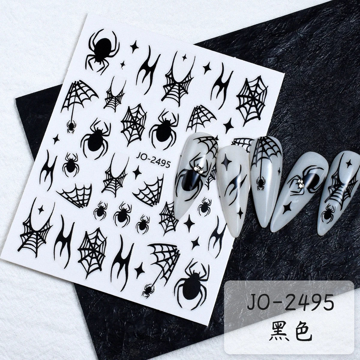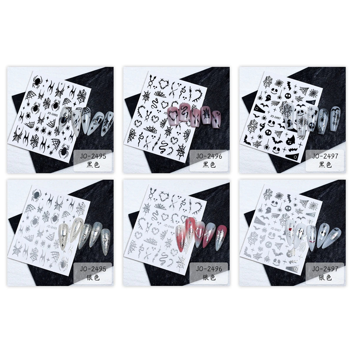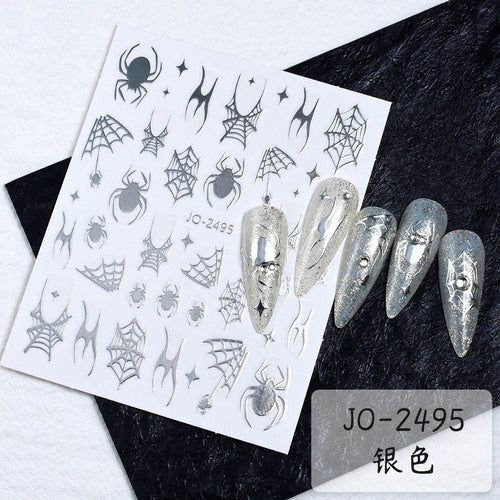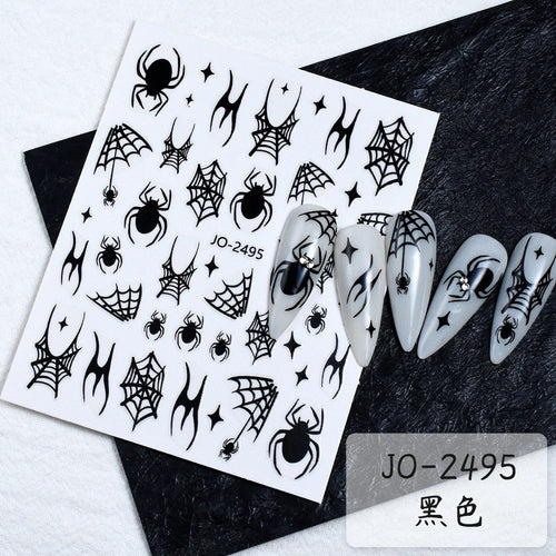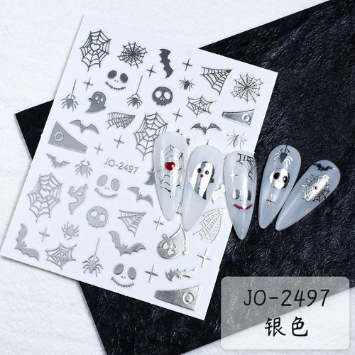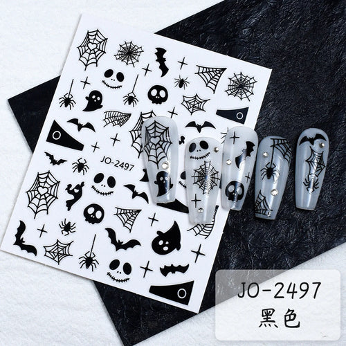 Halloween Cartoon Ghost Design Nail Art Stickers with Spider Skeleton Pattern Nail Decoration Decals