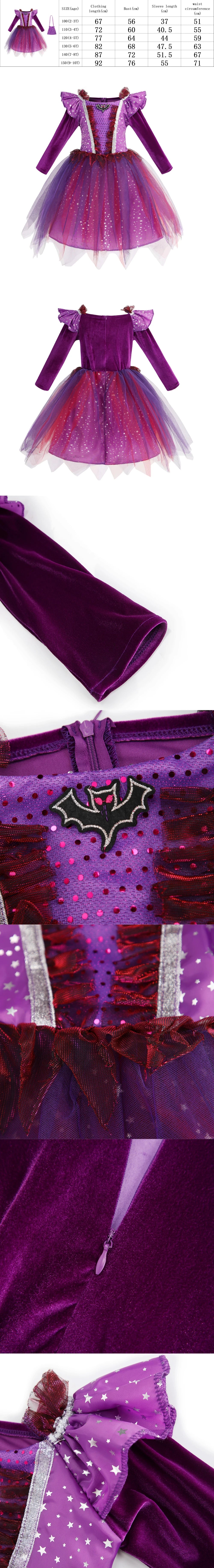 Halloween Children Girls Witch Party Dress Gothic Ghost Costume Kids Gown Robe Tutu Dress Witch Hat For Purim Carnival Party