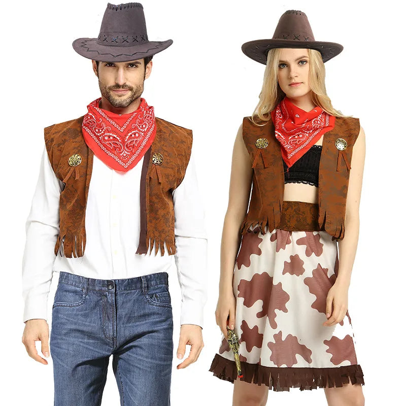 Halloween COS Costume Party Costume Denim Themed Dress Up Western Denim Suit Denim Vest Set