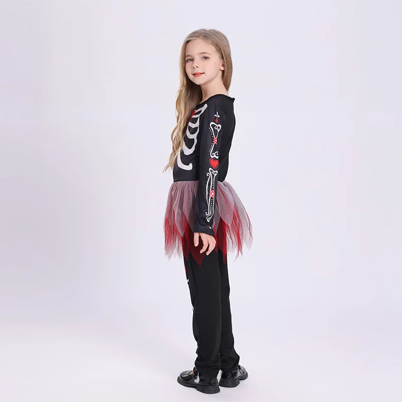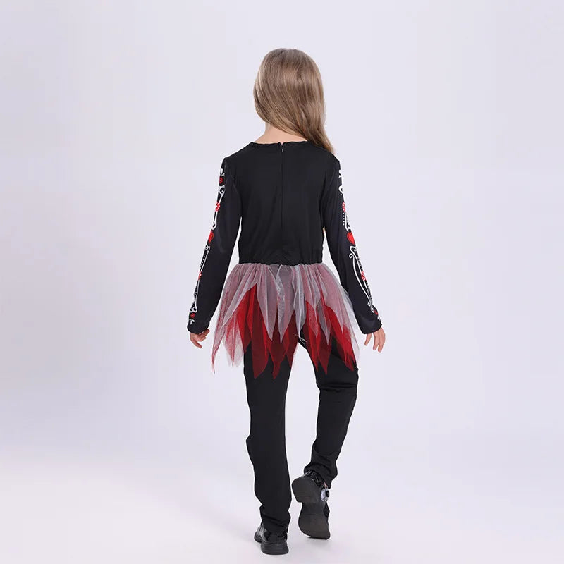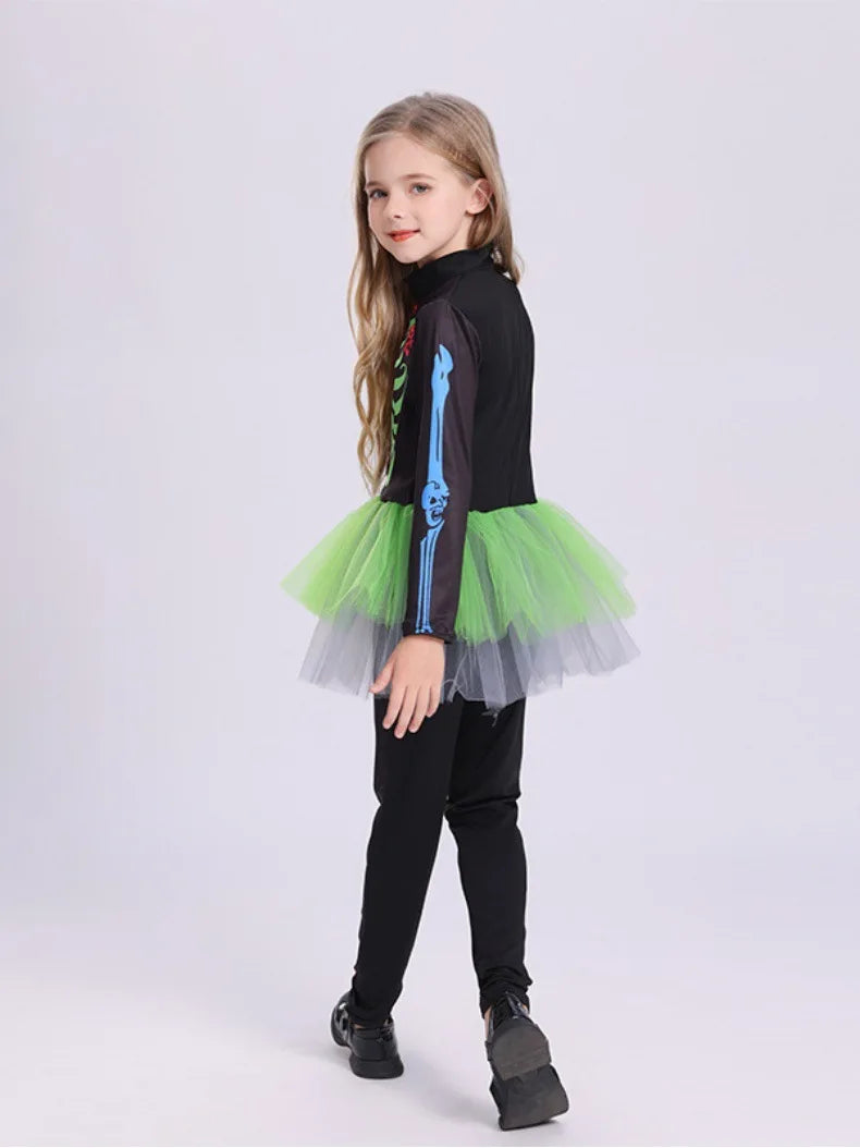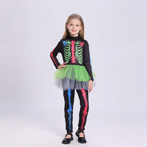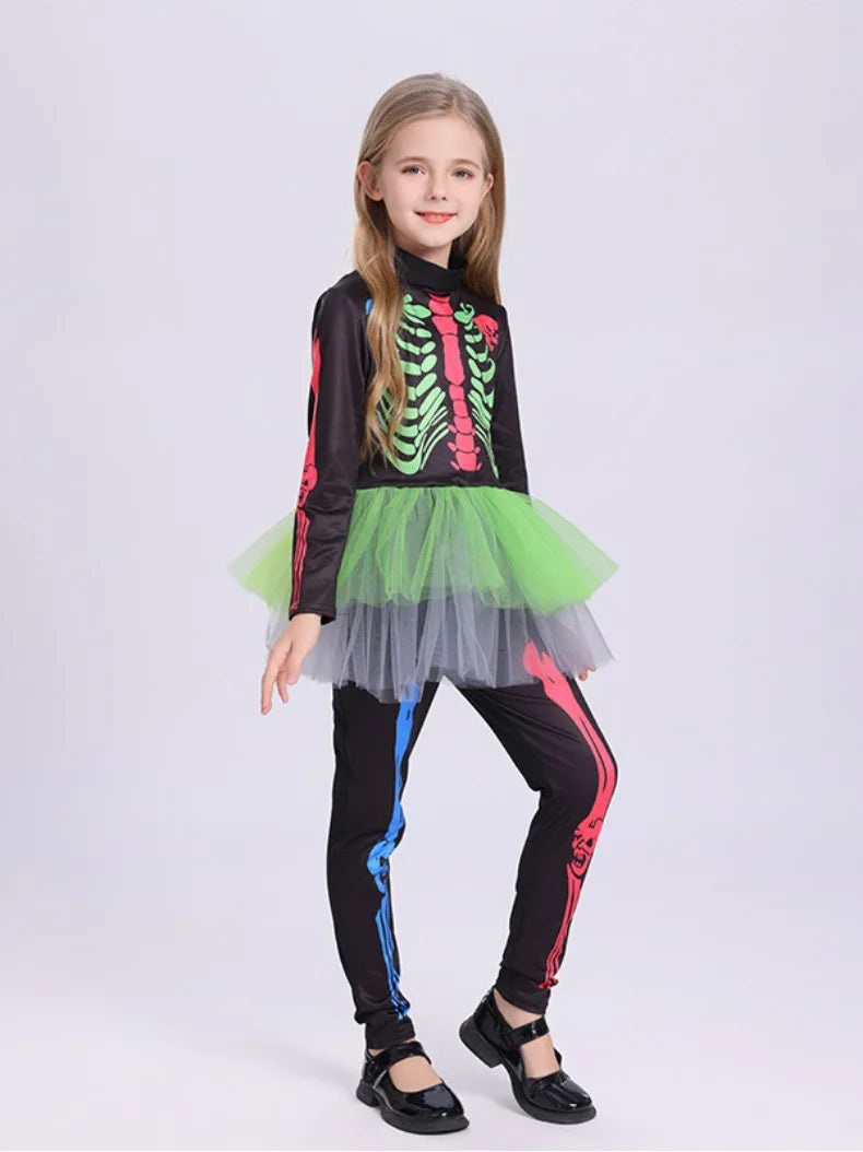Halloween Cosplay Skeleton Costume, Children's Colorful Skeleton Costume, Girls' One-piece Tight Skirt Dress Up