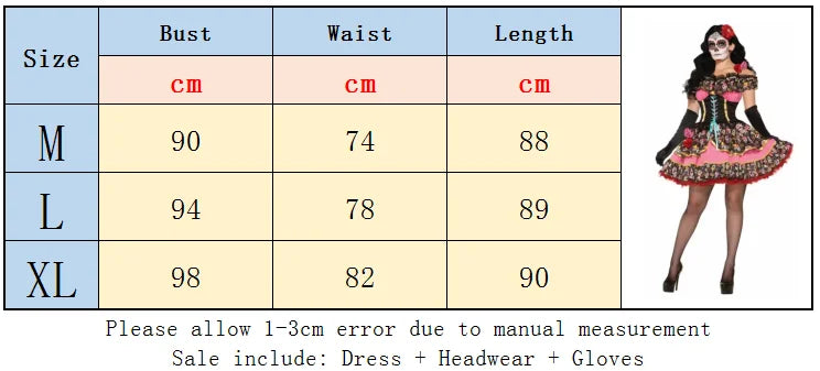 Beautifully Macabre! A striking skull and flower design brings gothic elegance to Halloween, Day of the Dead, or cosplay events. Perfect mix of spooky and stunning. π Includes: Skull bride dress + accessories π Occasions: Halloween, Day of the Dead π