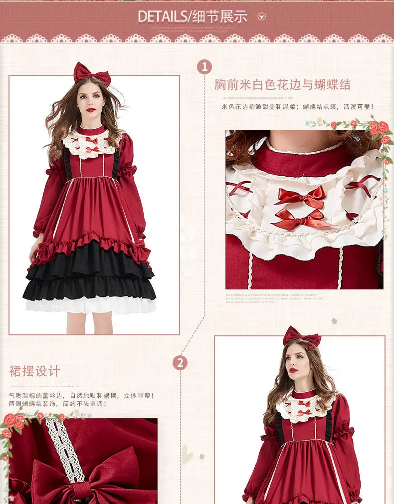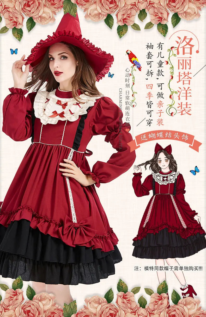 Halloween Costumes Lolita Dress for Child Princess Dress Lovely Red Lolita Princess Costume Carnival Party Cosplay Dresses