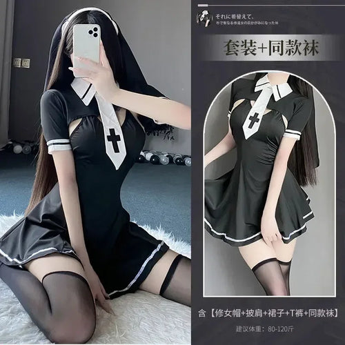 Halloween Costumes Sexy Nun Women Cosplay Lingerie Gothic Maid Anime Roleplay Outfits Tassel Carnival Fancy Dress Up Party