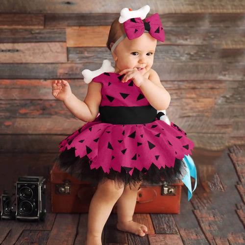 Halloween Elegant Girls Dress Toddler Kids Caveman Costume Dog Bones Historical Cavegirl Mesh Tulle Princess Dress Party Outfits