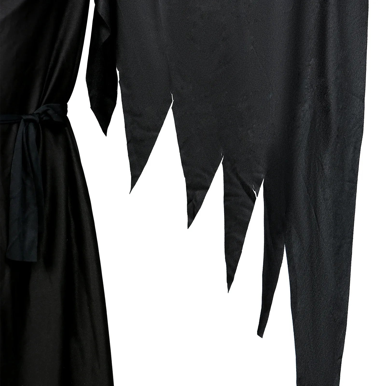 Halloween Grim Reaper Horror Costume Black Hooded Spooky Ghost Robe Dress Up Costume Adult Cosplay Mask Scythe Prop Party