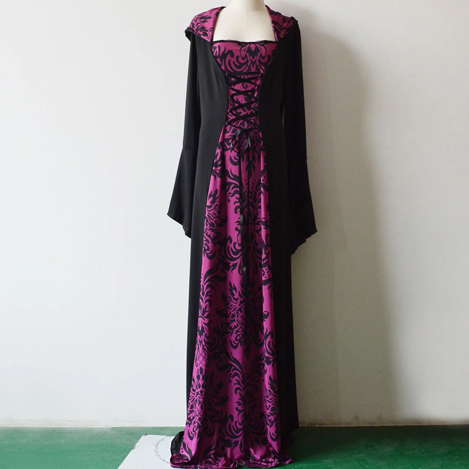 Women Vintage Retro Gothic Long Sleeve Hooded Dress Long Gown Dresses