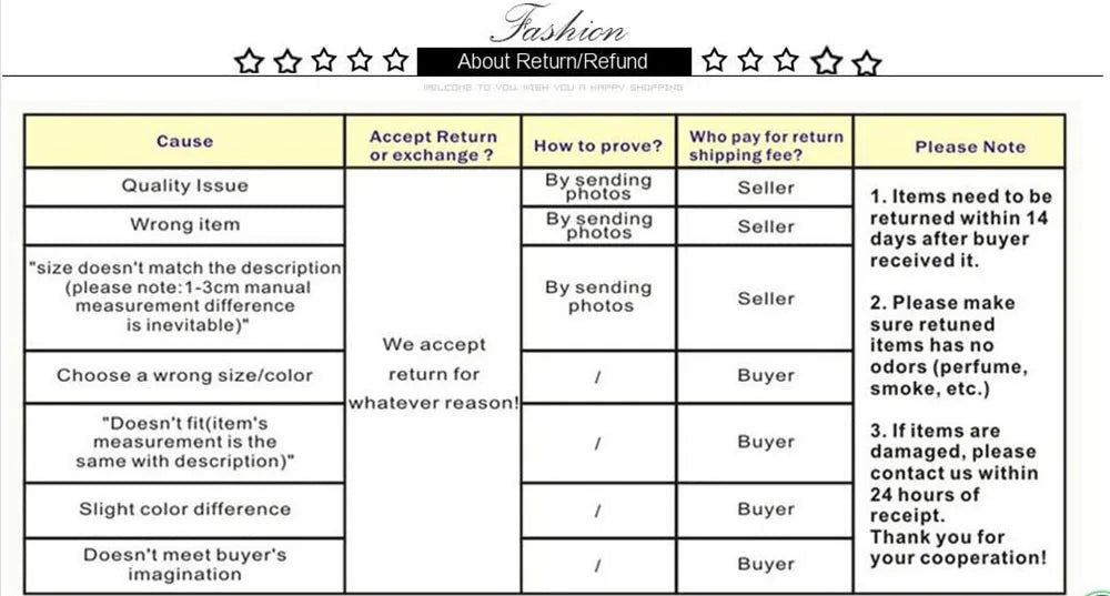 If there's any questions about items you received, try to contact us the first time and please do not leave us a negitive feedback, Trust us that we will solve it for you in time.