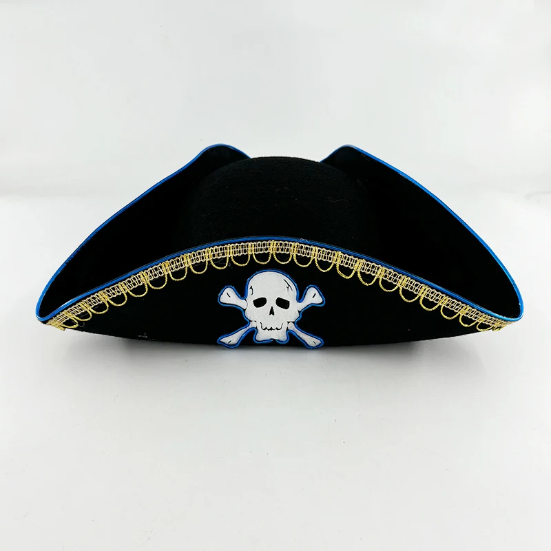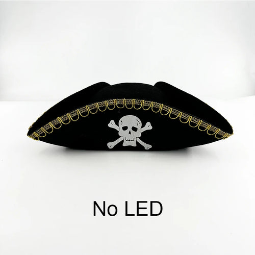 Halloween LED Light Black Pirate Hat For Adult Pirate Theme Party Glowing Cap Cosplay Costume Luminous Hat With Skull Pattern