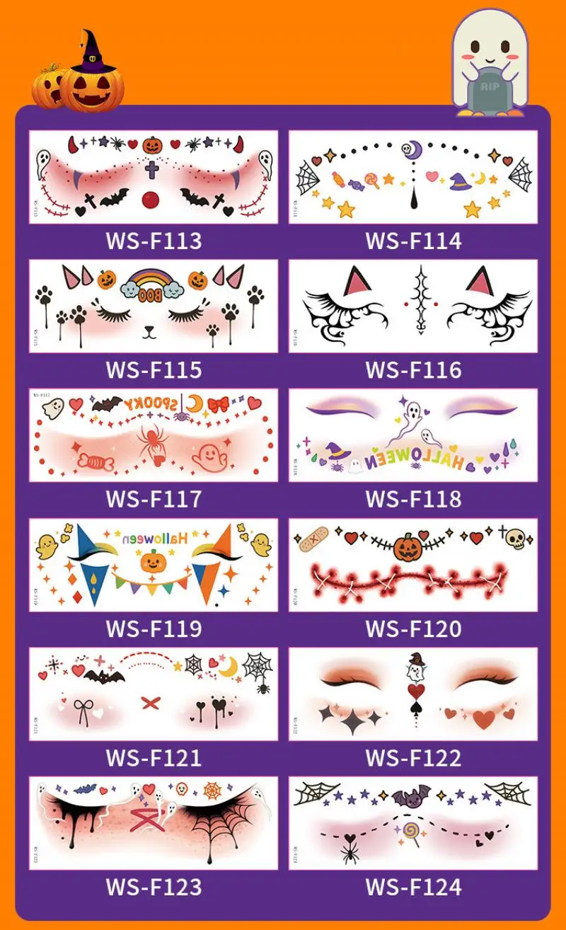 Halloween Makeup Face Stickers Cute Makeup Tattoo Stickers Waterproof and Sweat-Proof Tattoo Stickers