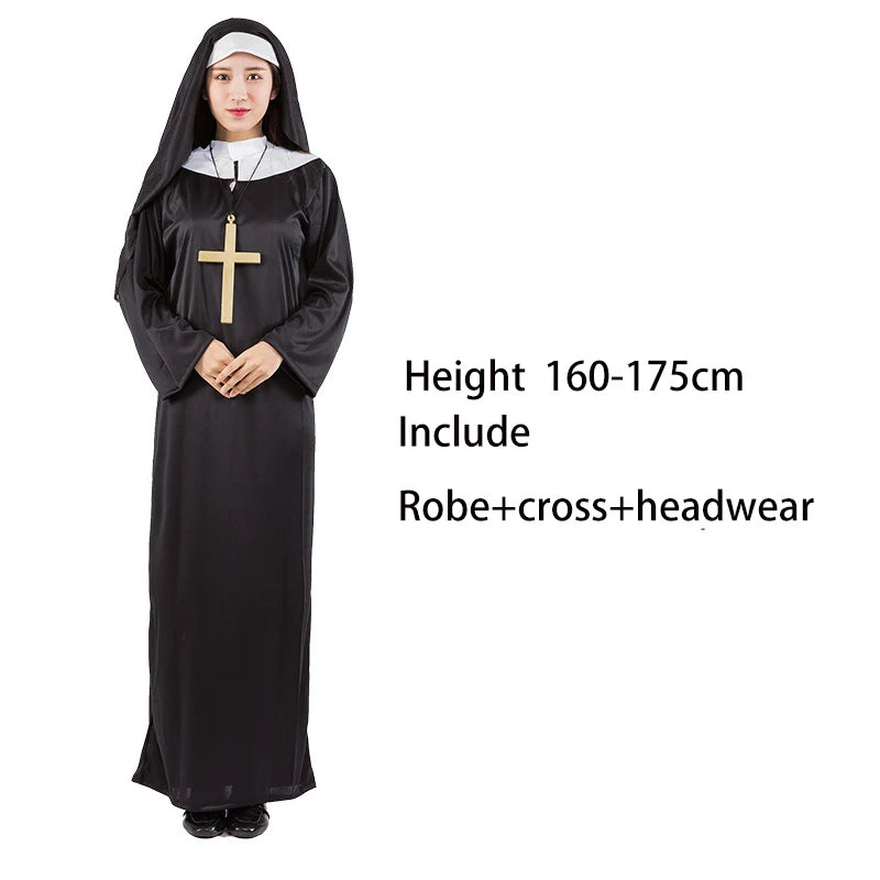 Halloween Men Priest Cosplay Costumes For Women Clothes Carnival Nun Long Robes Religious Catholic Church Clothing Missionary