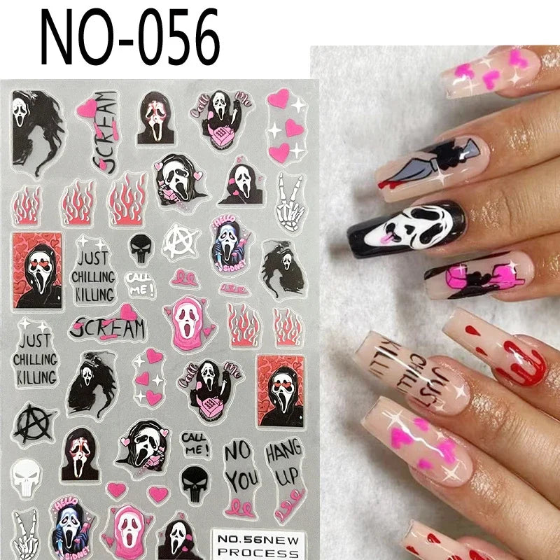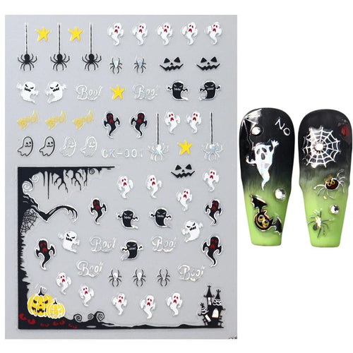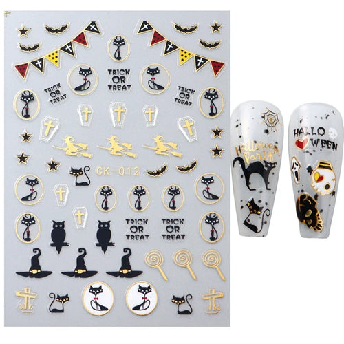 Halloween Nail Art Stickers Cute Halloween Nail Decals Self-Adhesive Ghost Pumpkin Bat Cat Skull Holiday Designs Nail Supplies