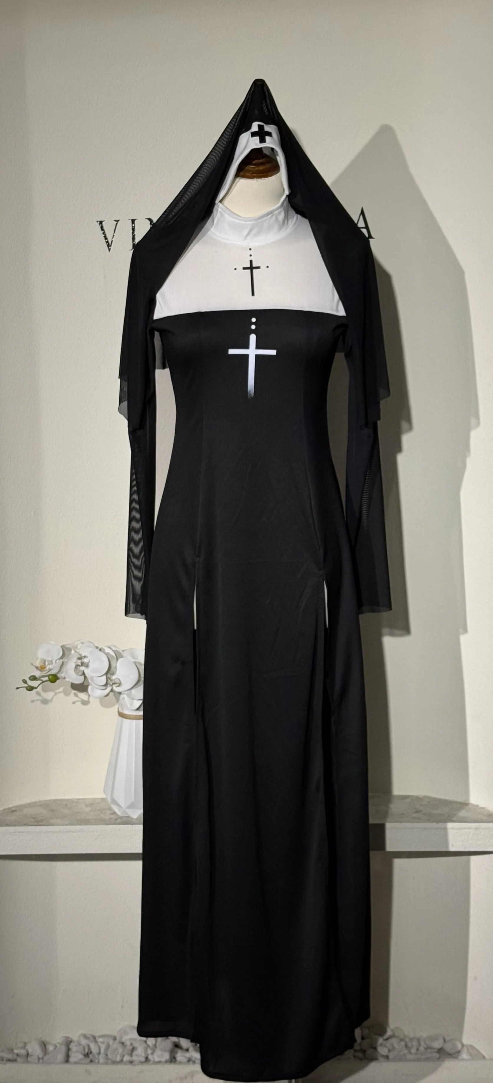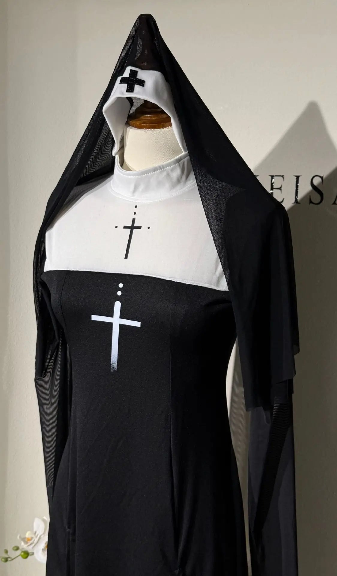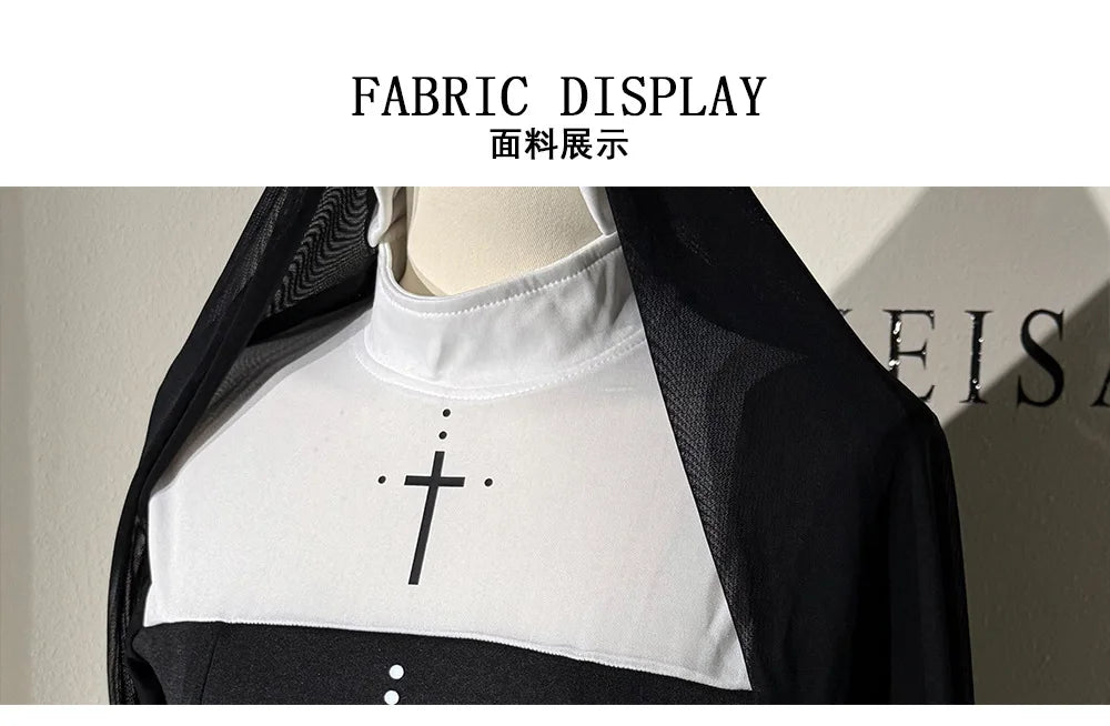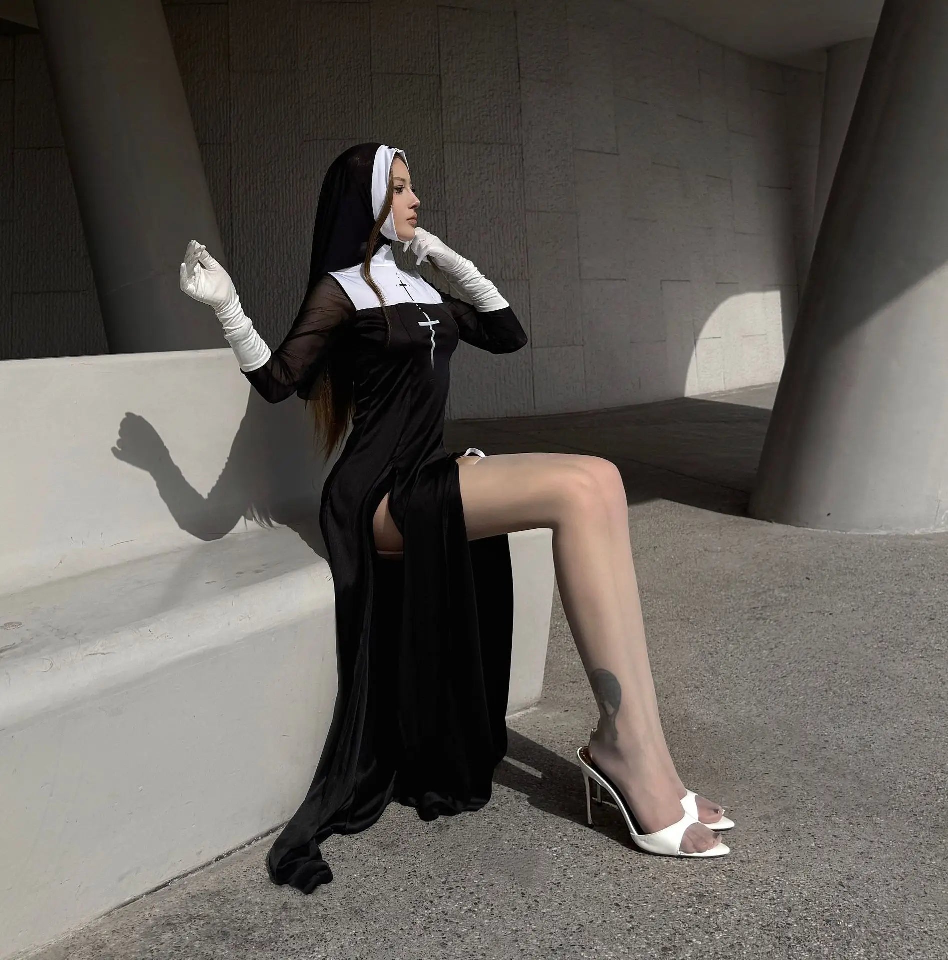 Halloween Nun Costume Female Carnival Cosplay Sexy Nun Dress with Headwear Two Piece Set Church Costumes Pray Gothic