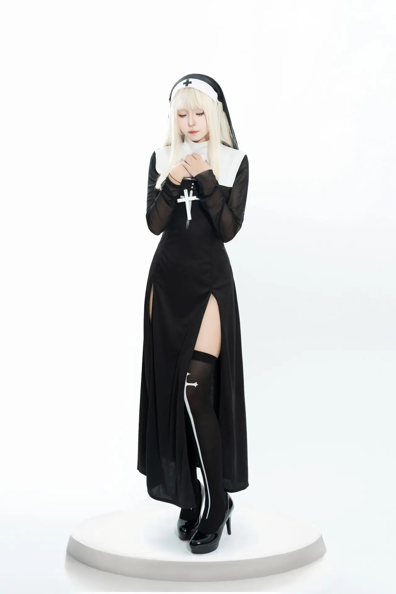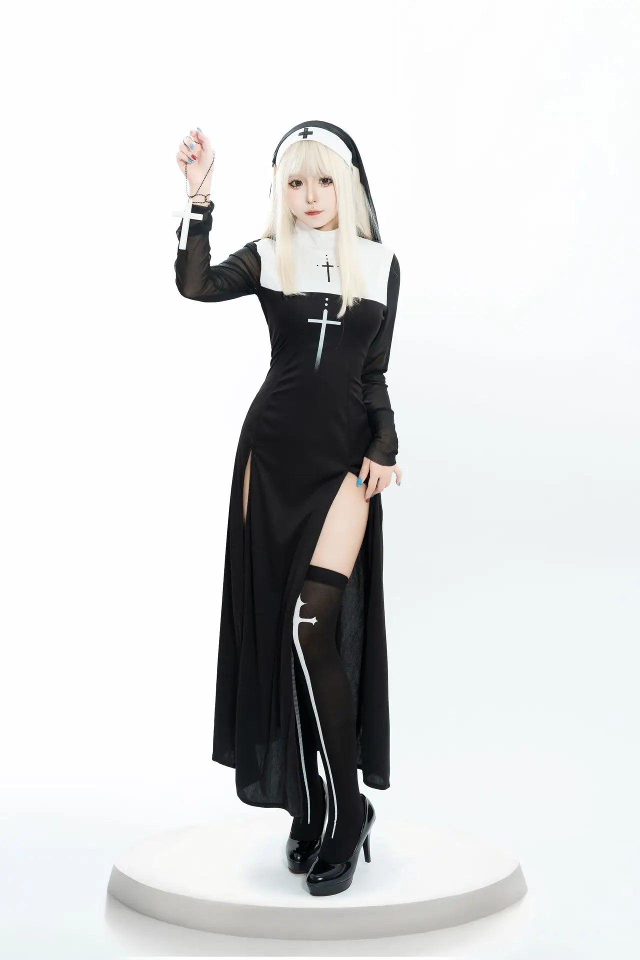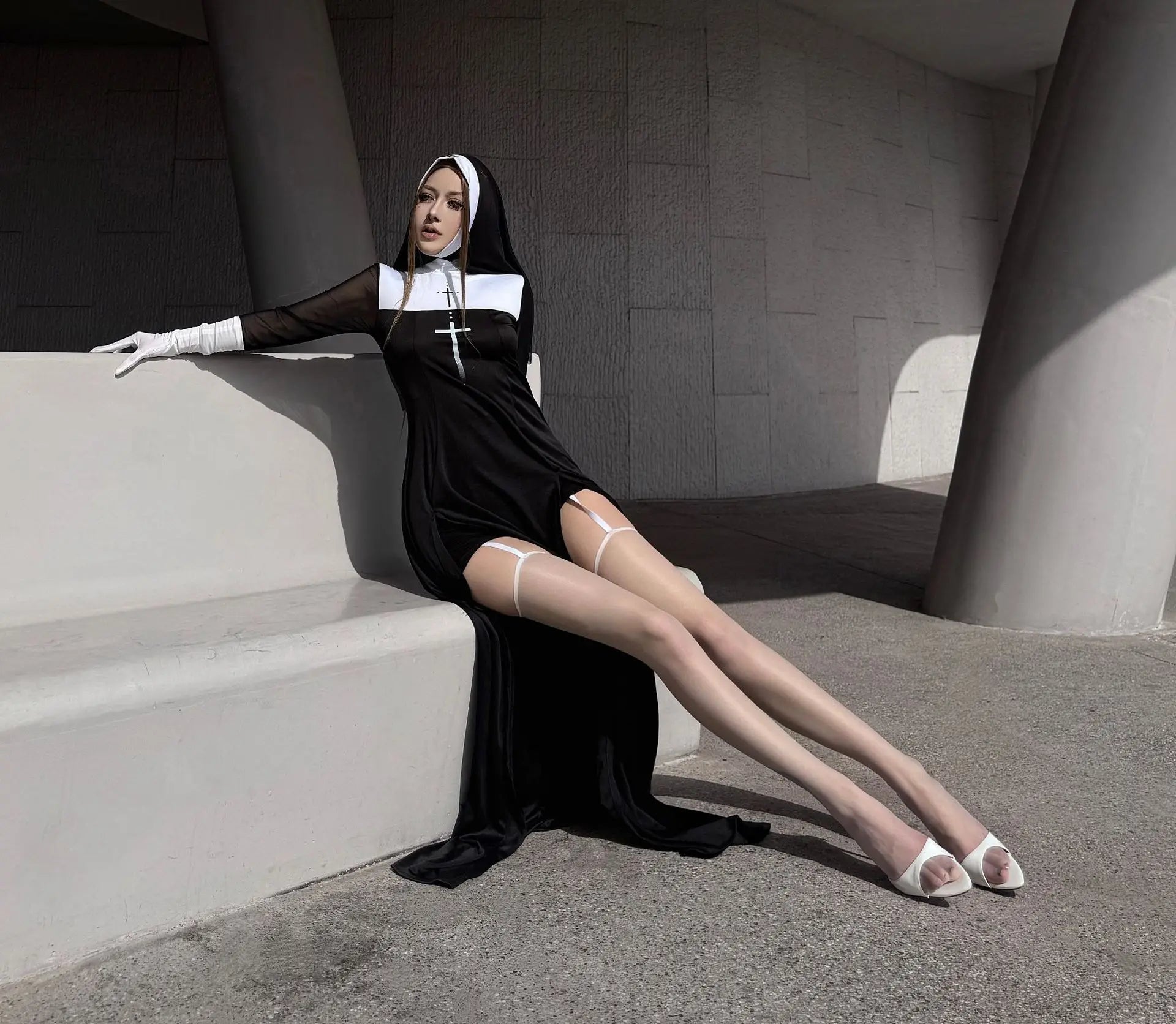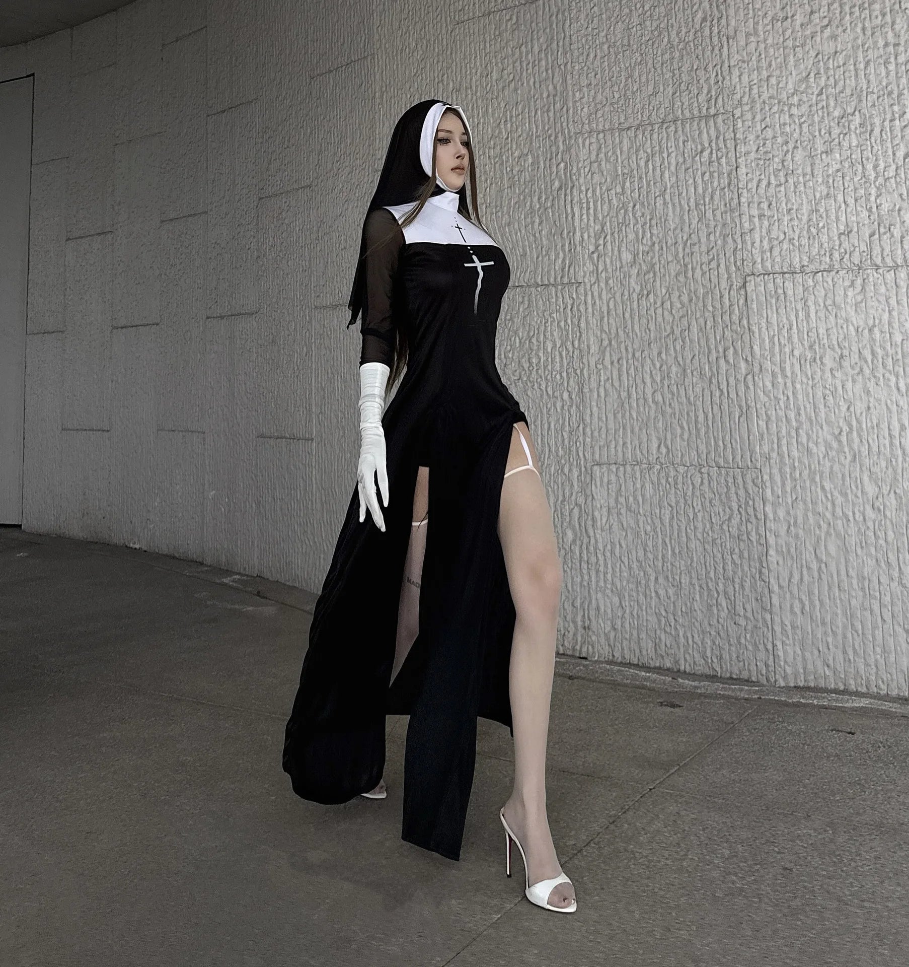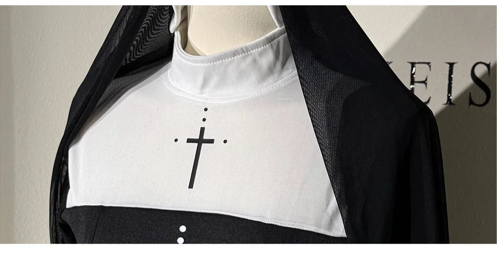 Women’s Sexy Nun Costume – Two-Piece Dress & Headwear Holy Halloween Fun! Gothic-inspired two-piece nun outfit with headwear, perfect for Halloween parties and cosplay. Bold, sexy, and unforgettable. ✝️ Includes: Dress & headwear 🎃 Perfect for Halloween
