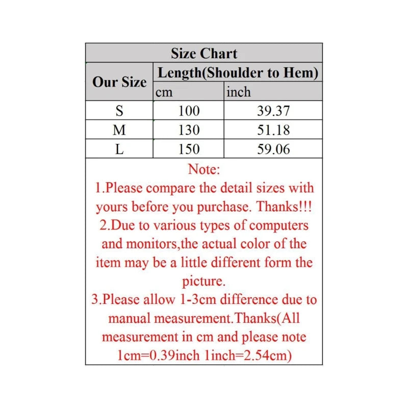 Size:L Length(Shoulder to Bottom):150cm(59.05inch)