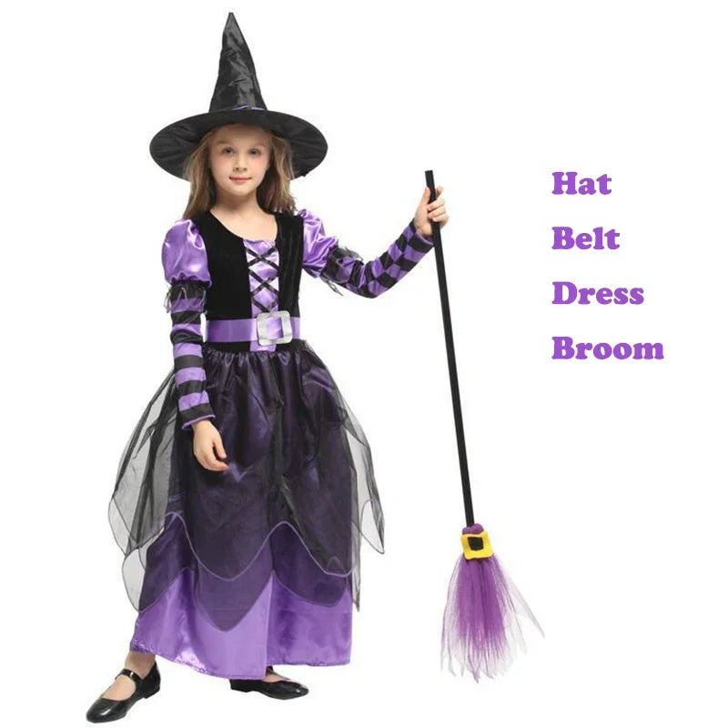 ππ A Spell of Style! πͺ Charming purple witch dress with mesh long sleeves, matching hat & broom β perfect for Halloween parties, school carnivals, or magical dress-up! β¨ π Shop now!