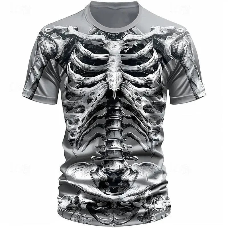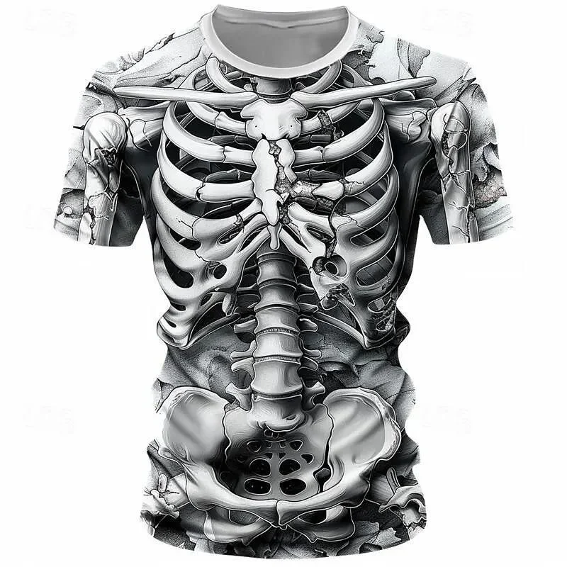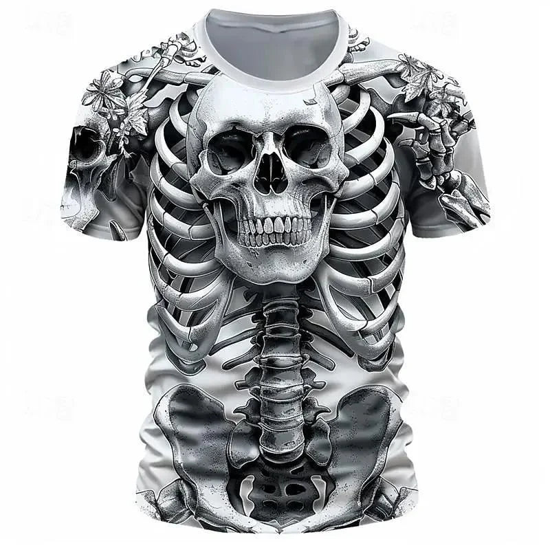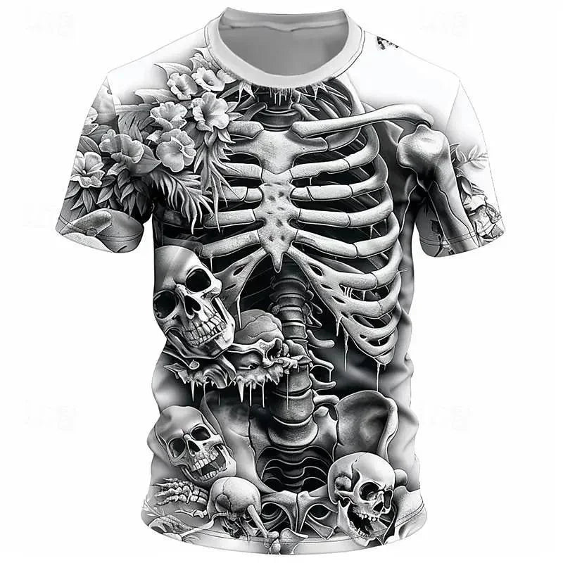 Halloween Skeleton Pattern T Shirt For Men Funny Skull 3D Printed T-Shirts Summer Oversized Short Sleeve Tees Round Neck Tops