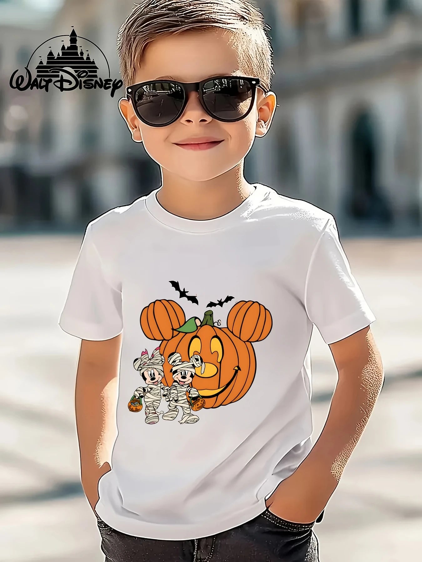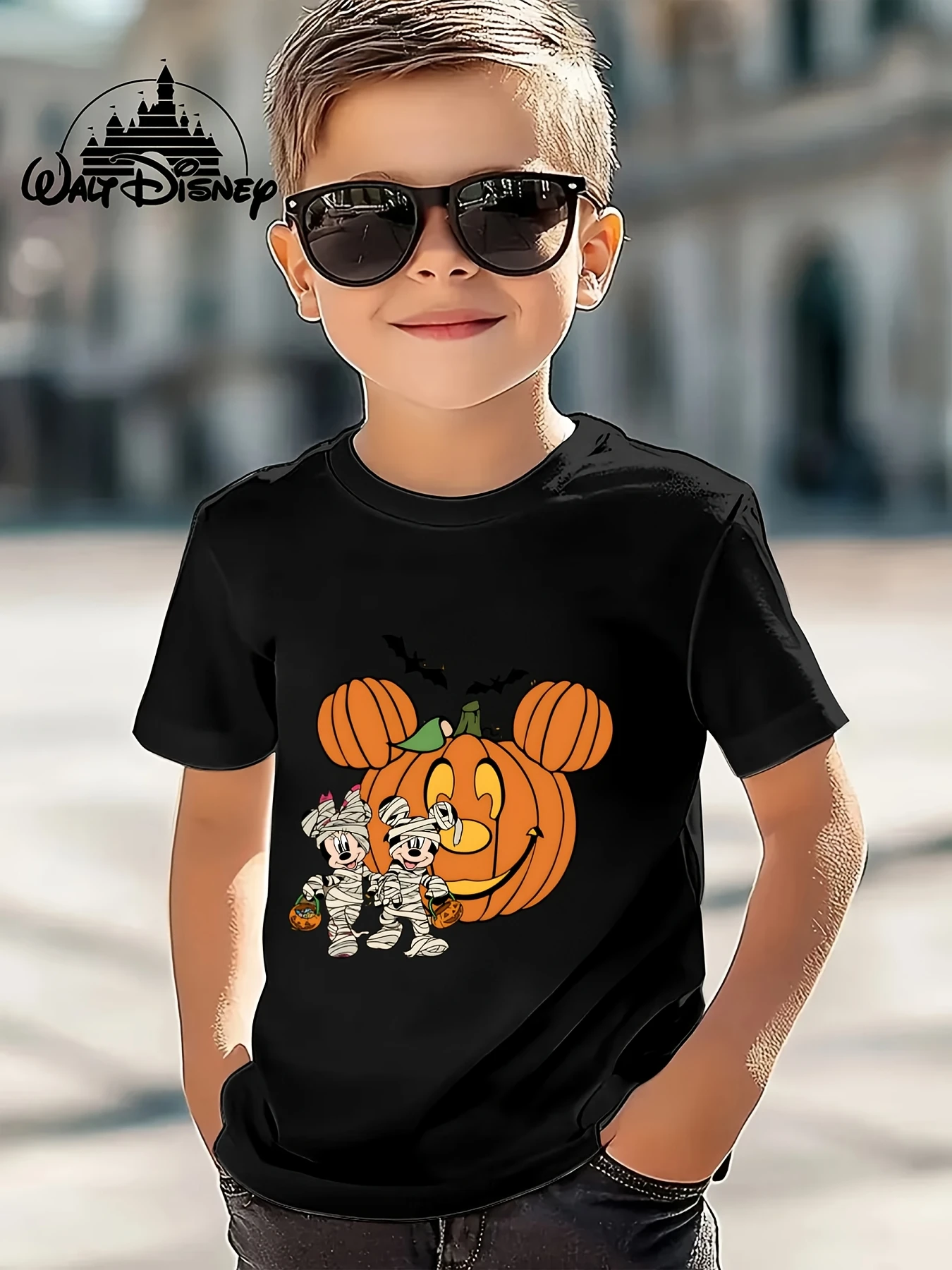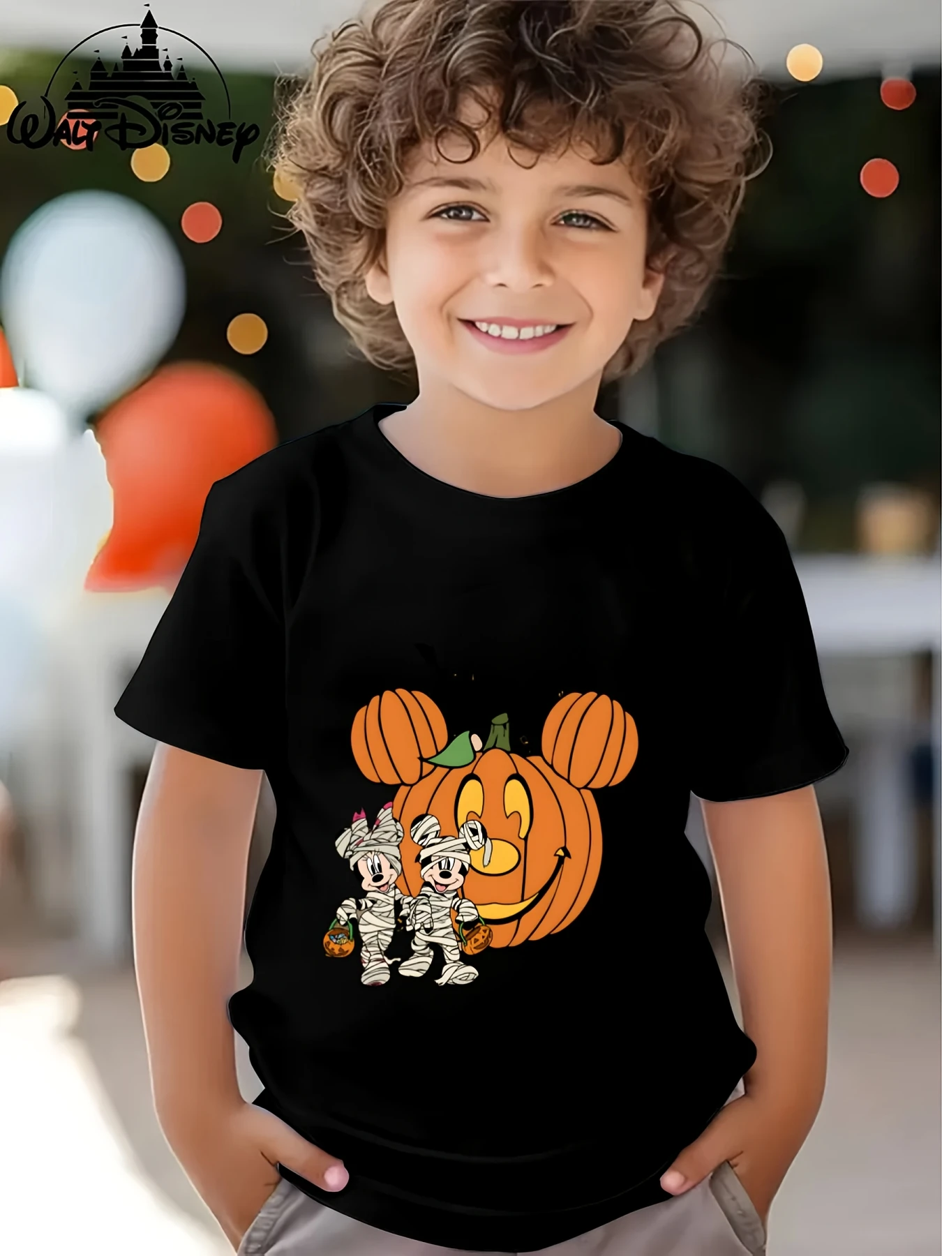 Halloween T-Shirt for Kids Mickey & Minnie Mouse Mummy Design  Cotton Breathable Casual Crew Neck Short Sleeve Everyday Wear