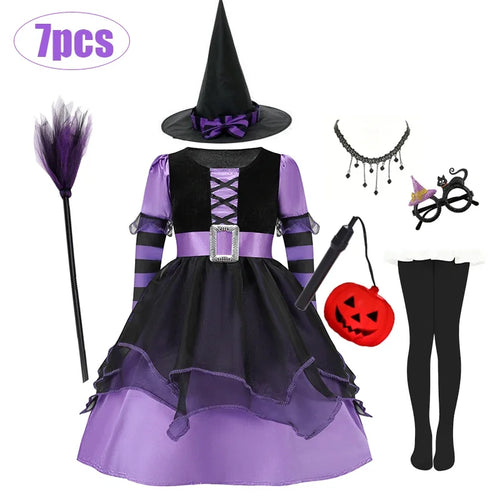 Halloween Vampire Costume for Kids Girls Devil Witch Gothic Ghost Bride Clothes Demon Bride Queen Cosplay Carnival Party Dresses