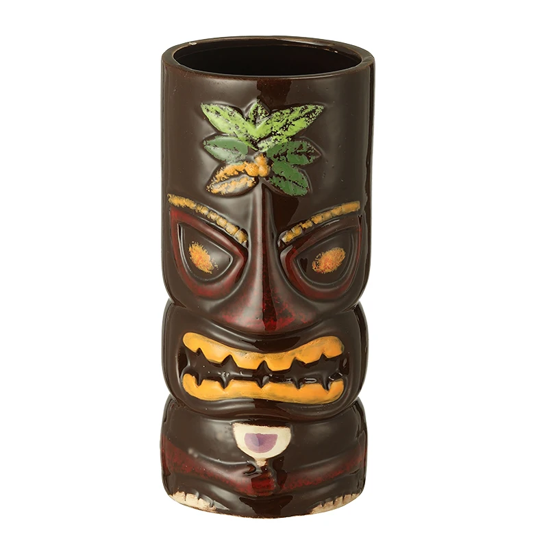 Tiki mugs are ceramic drinkware originating in mid-century American tiki bars and tropical themed restaurants, believed to have been pioneered by Don the Beachcomber. The term "Tiki mugs" is a generic, blanket term for sculptural drink ware that depict imagery from Melanesia, Micronesia or Polynesia, and more recently anything tropical or surfing-related.