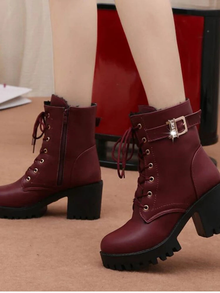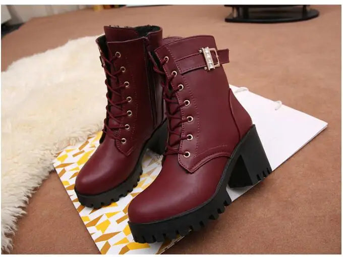 Hot Sale 2022 Women Boots Lace Up Flat Biker  Wine Red Boots Shoes Buckle Woman Botas Women Boots