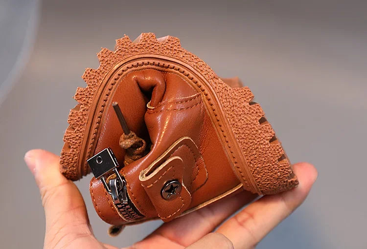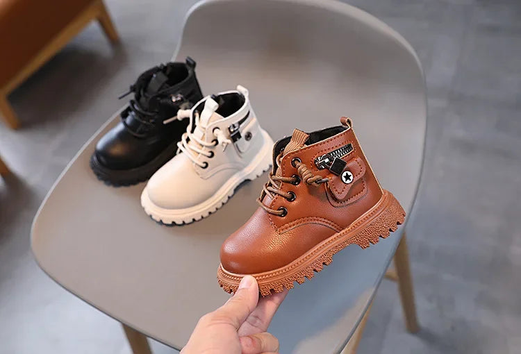 Kids Boots for Boys Spring Autumn Children's Causal Ankle Boots Fashion Black Versatile Girls School Leather Boots Side Zipper