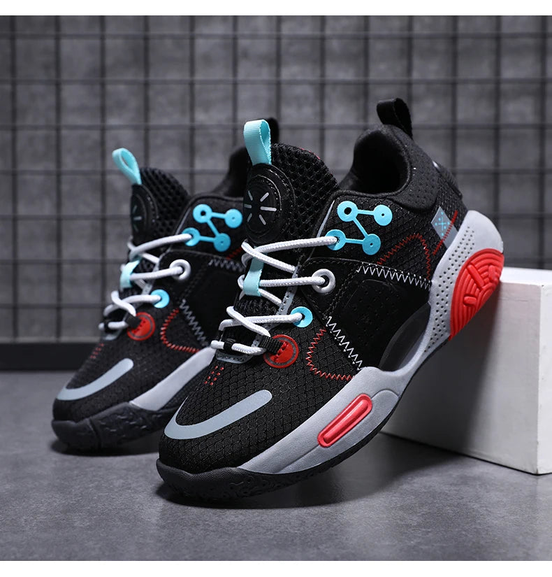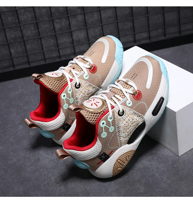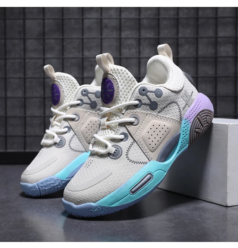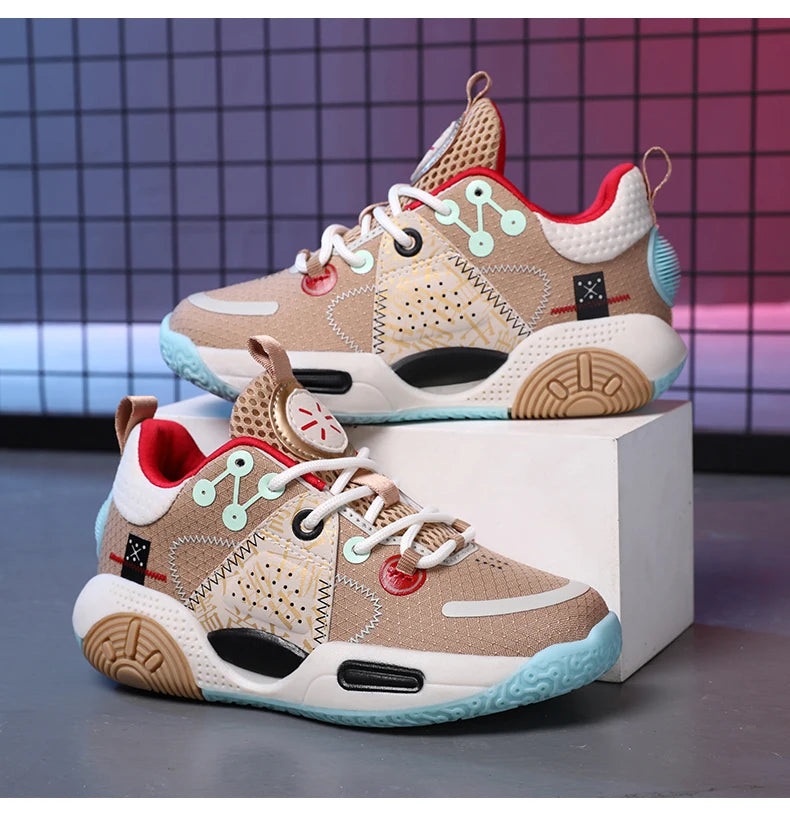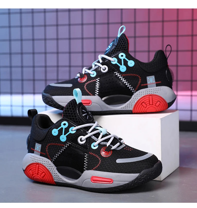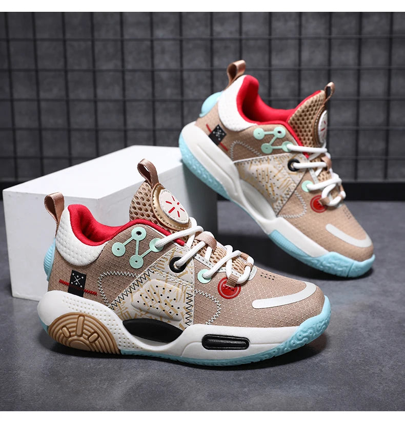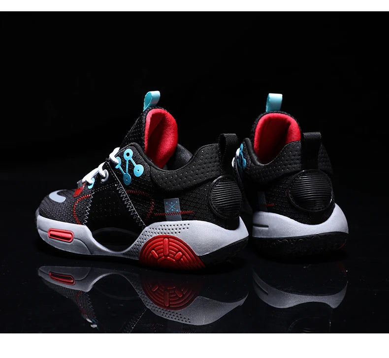 Kids Fashion Sneakers for Boys Leather Breathable Sports Basketball Shoes Lightweight Children School Walking Footwear