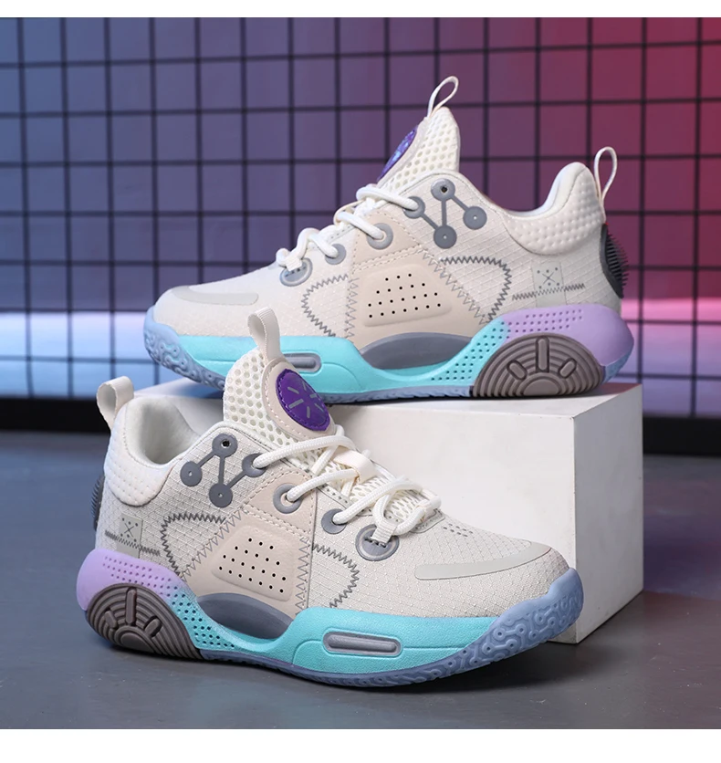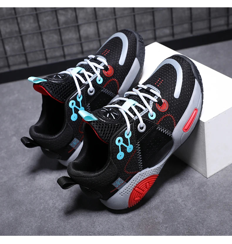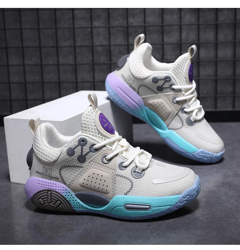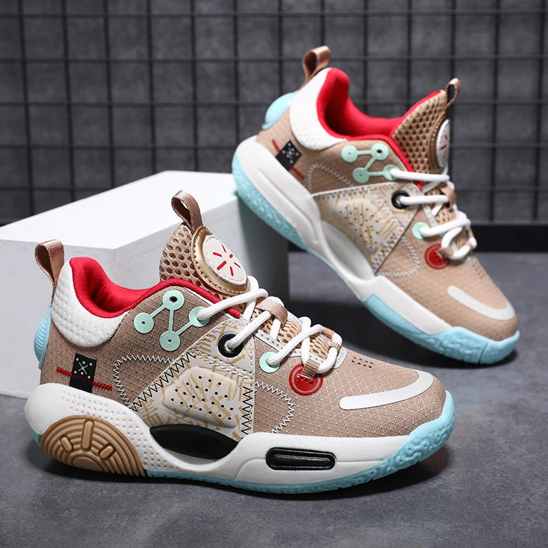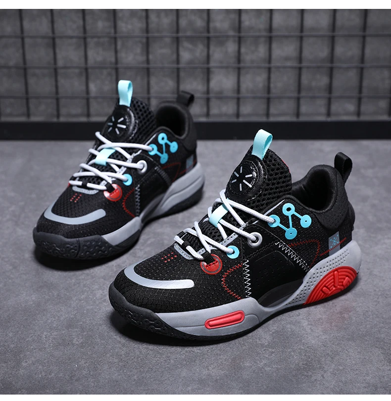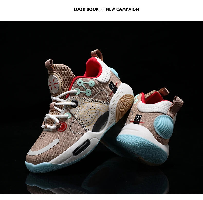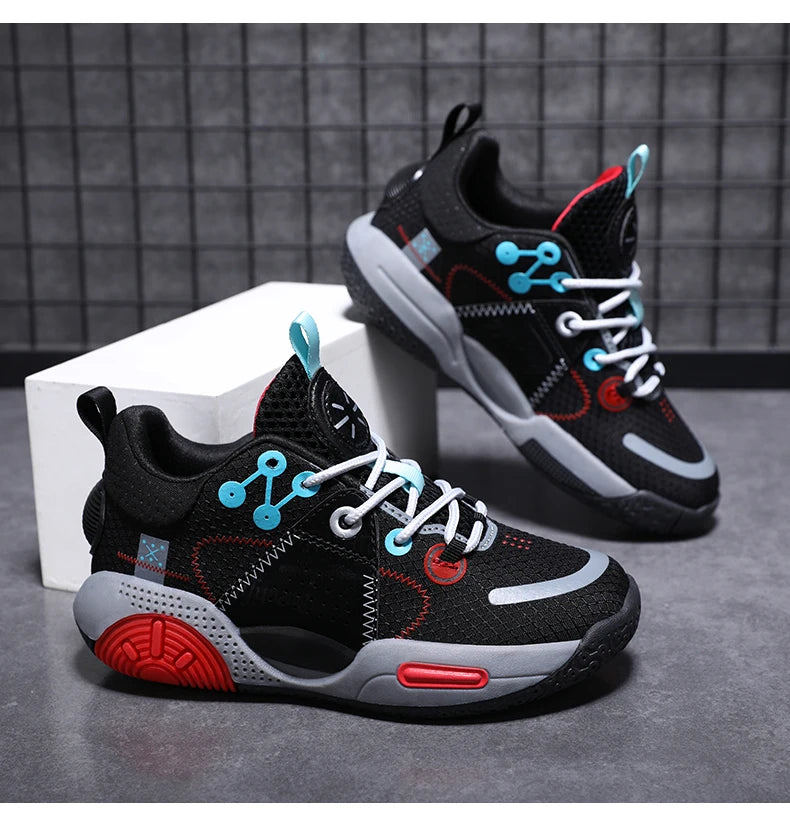 Kids Fashion Sneakers for Boys Leather Breathable Sports Basketball Shoes Lightweight Children School Walking Footwear