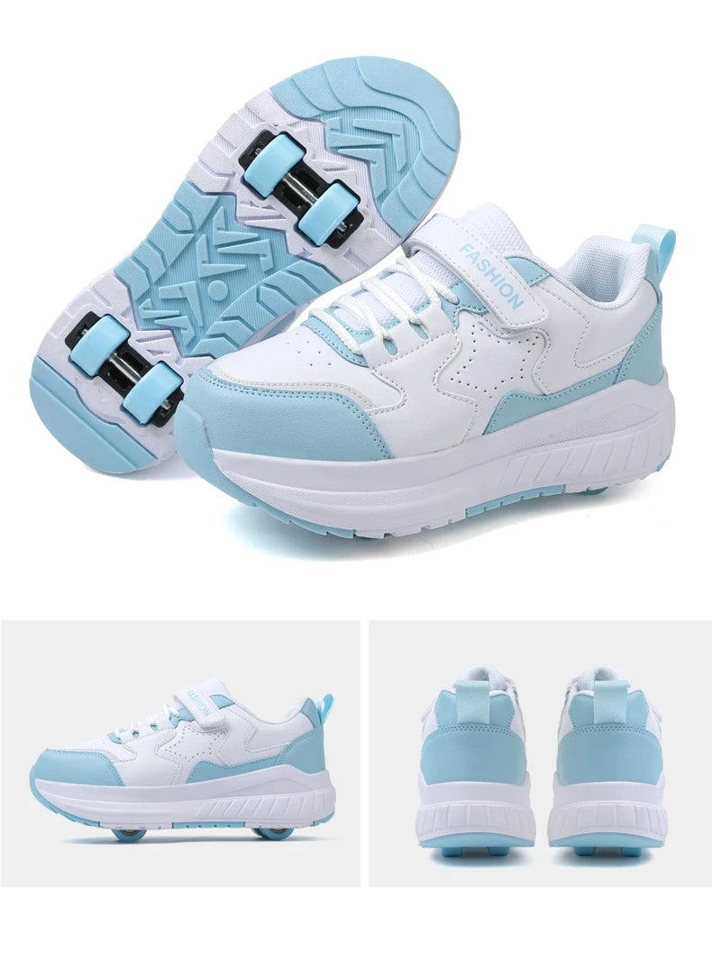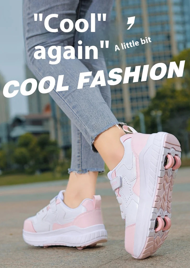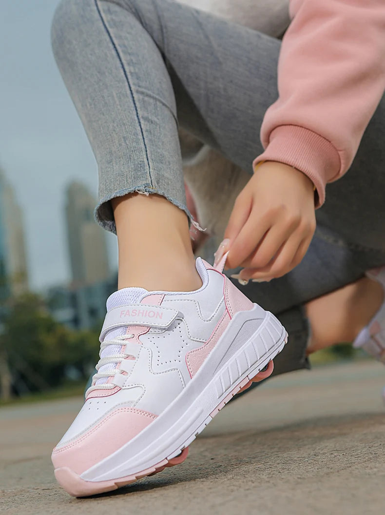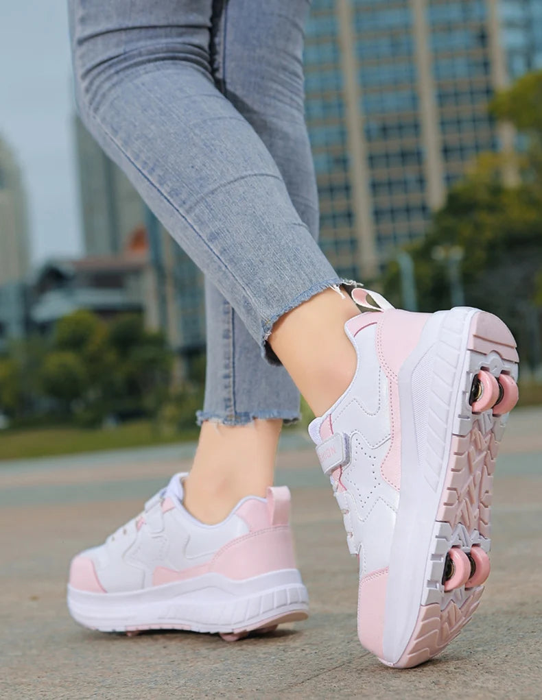 Kids Roller Skate Shoes Fashion Casual Sports Children 4-Wheels Sneakers for Boys and Girls Gift Nice Footwear