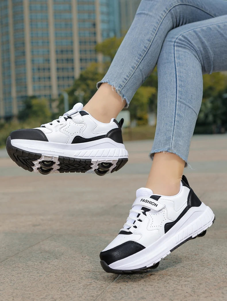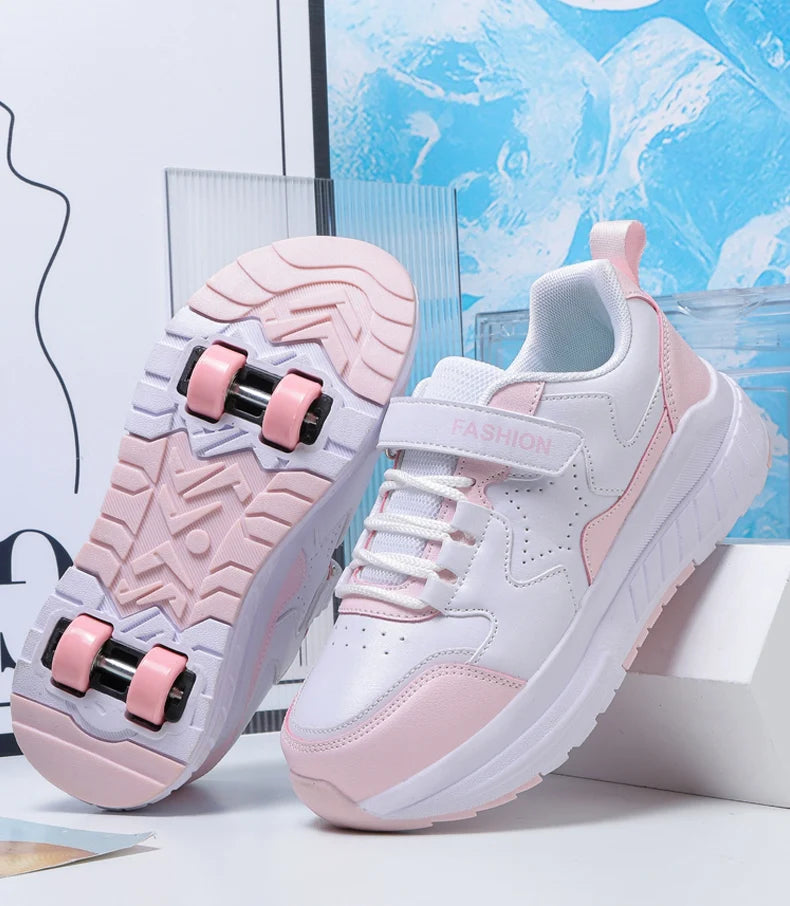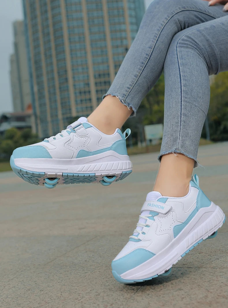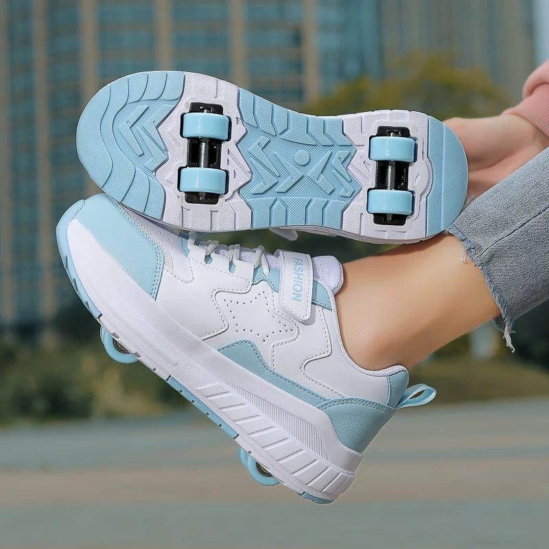 Kids Roller Skate Shoes Fashion Casual Sports Children 4-Wheels Sneakers for Boys and Girls Gift Nice Footwear
