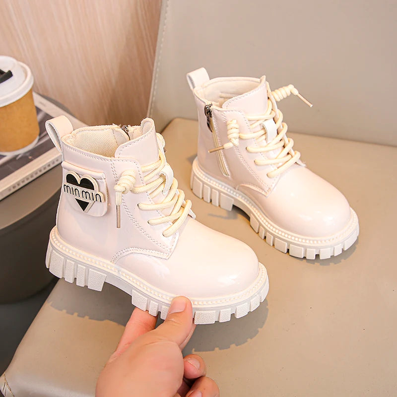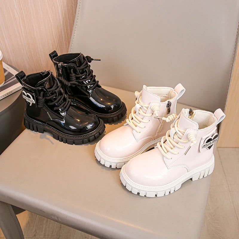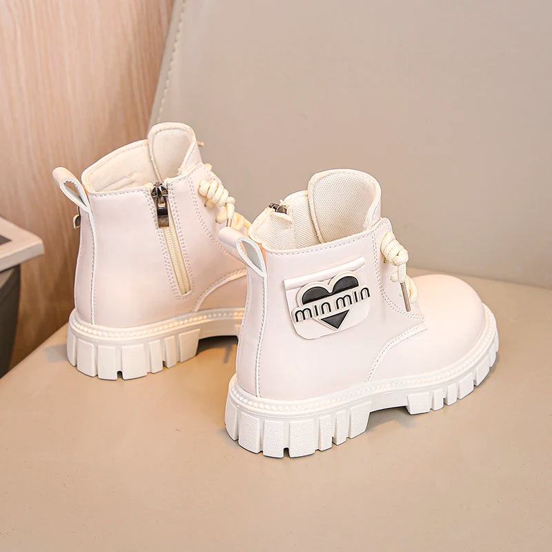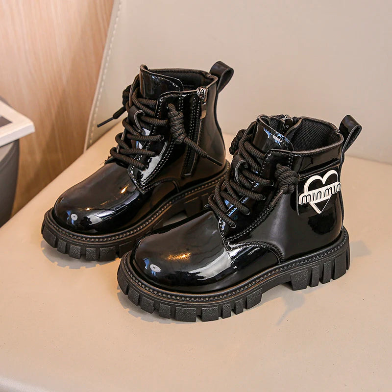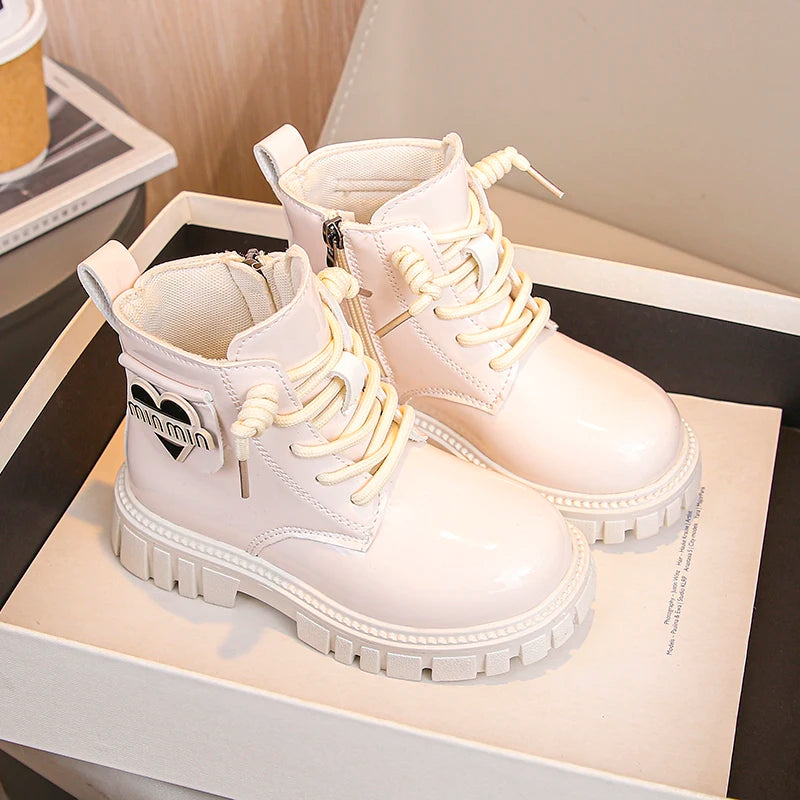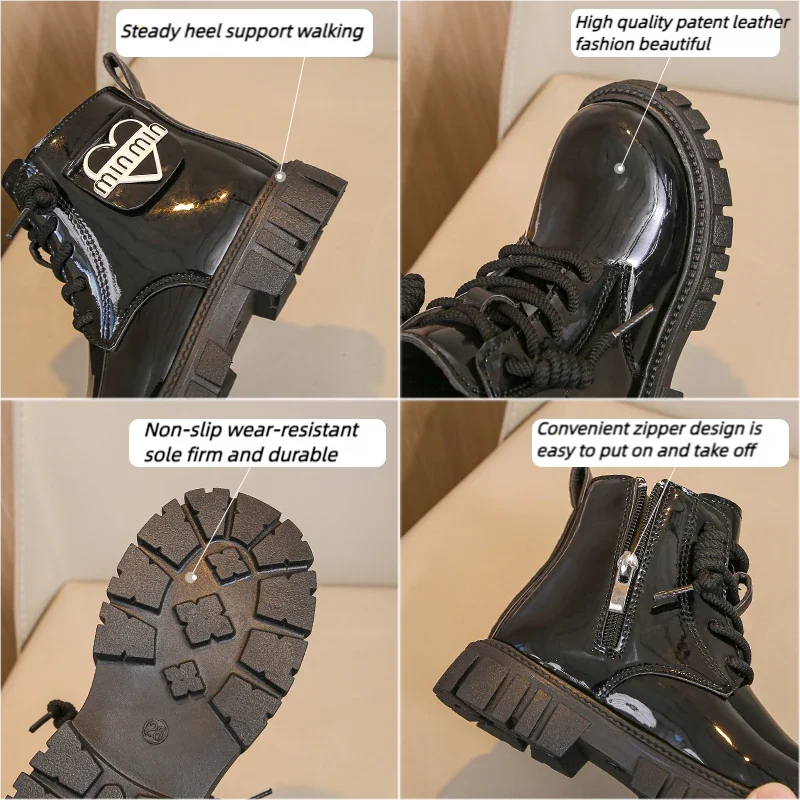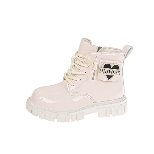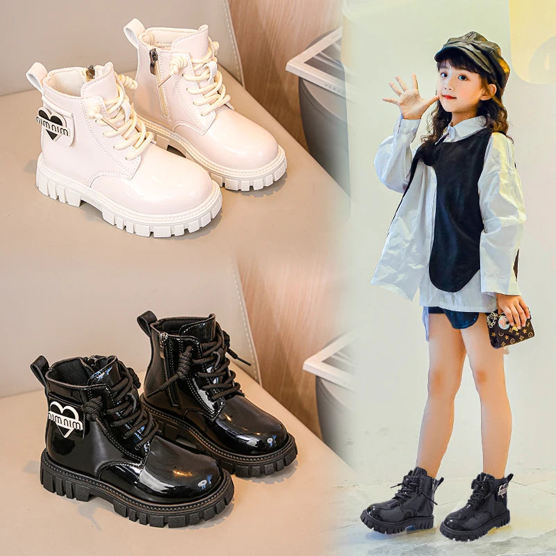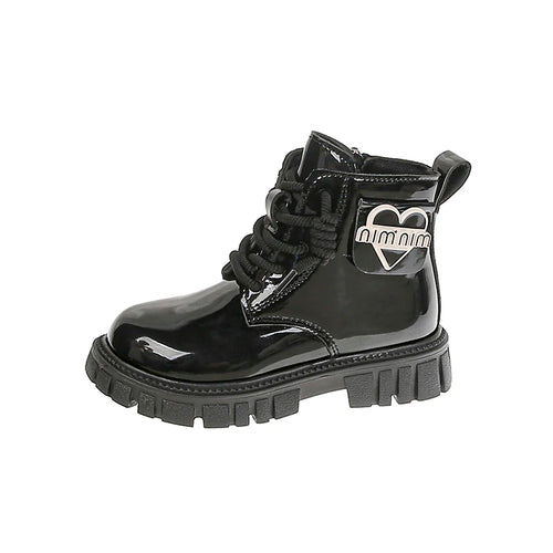 Kids Shoes Boots For Girl New School Thick Bottom Ankle Leather Boots Fashion Round-toe Children Black Short Boots Side Zipper