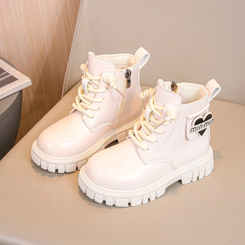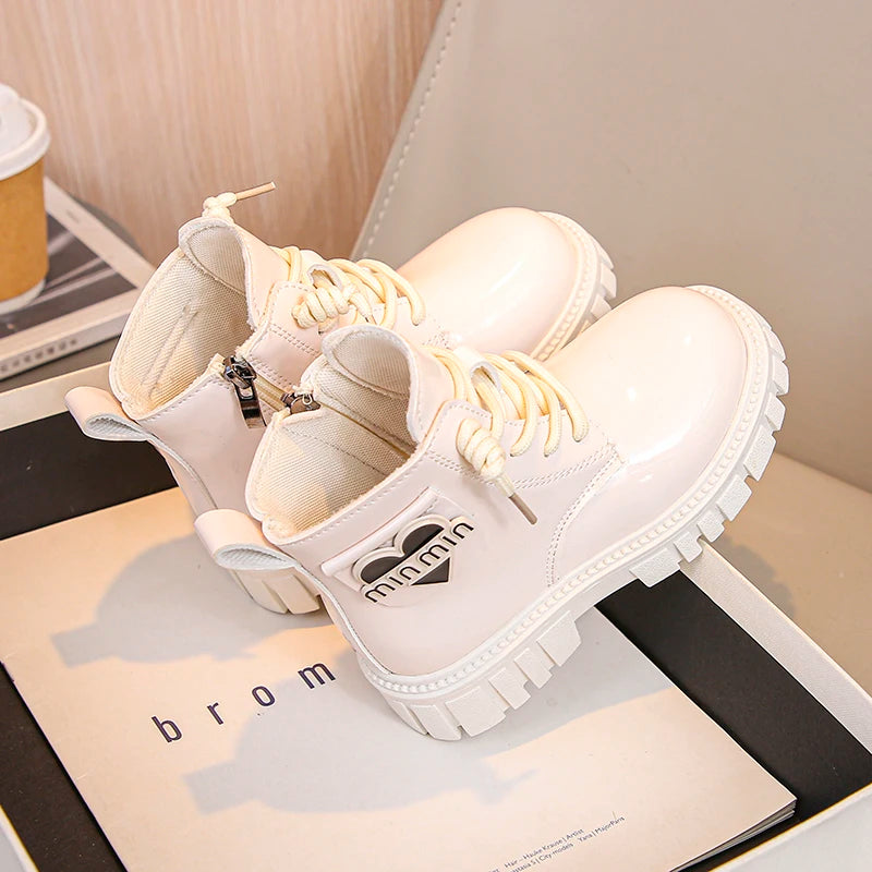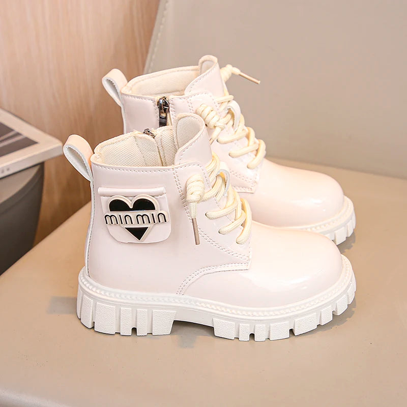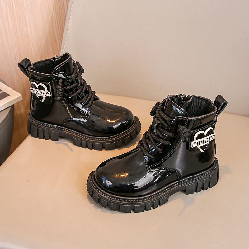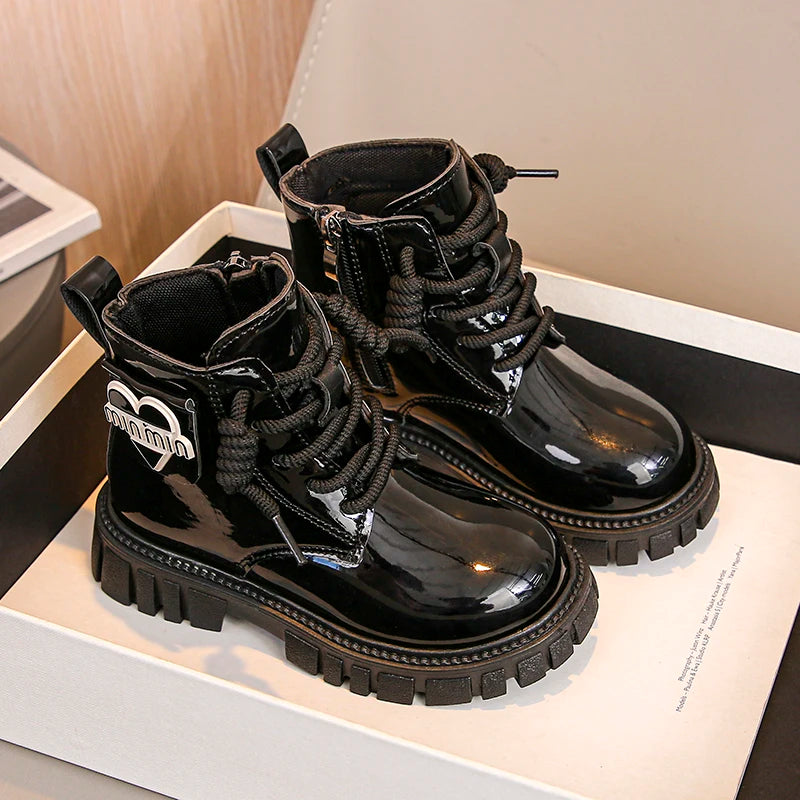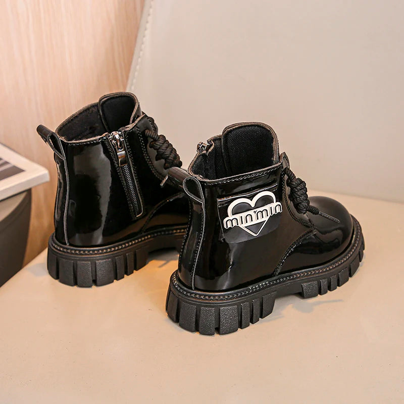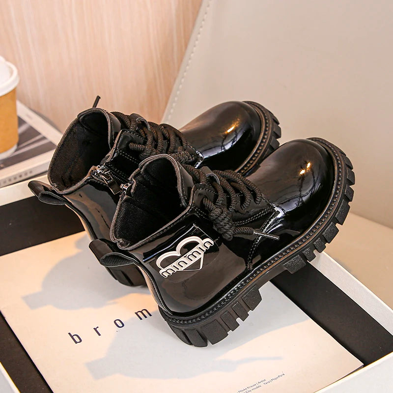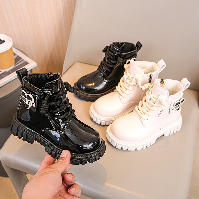 Kids Shoes Boots For Girl New School Thick Bottom Ankle Leather Boots Fashion Round-toe Children Black Short Boots Side Zipper