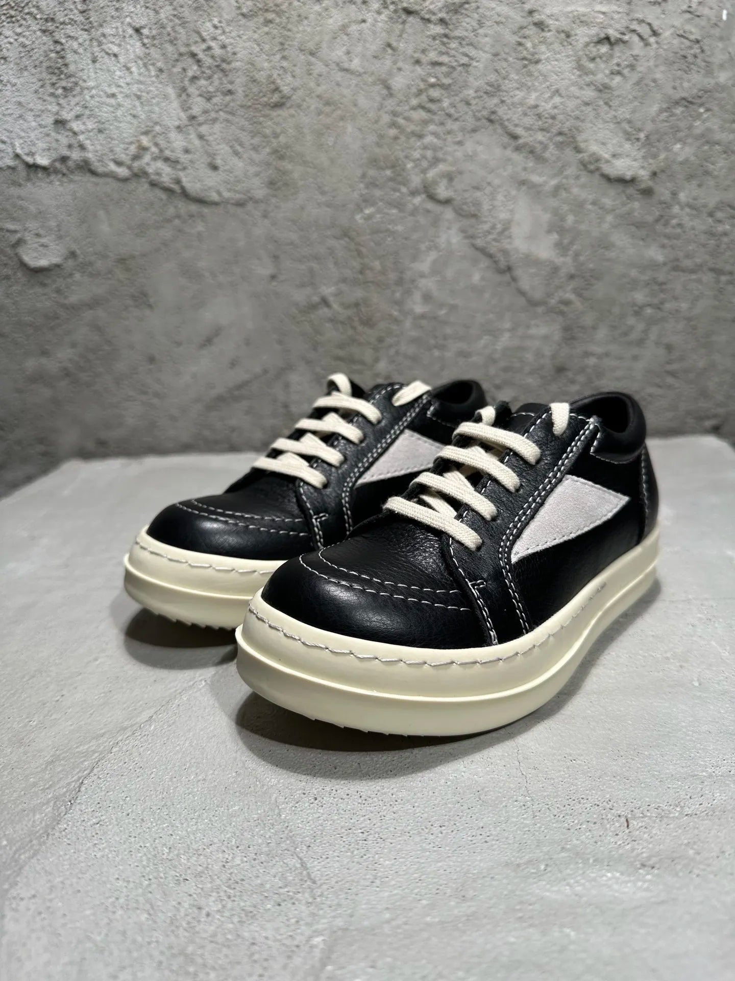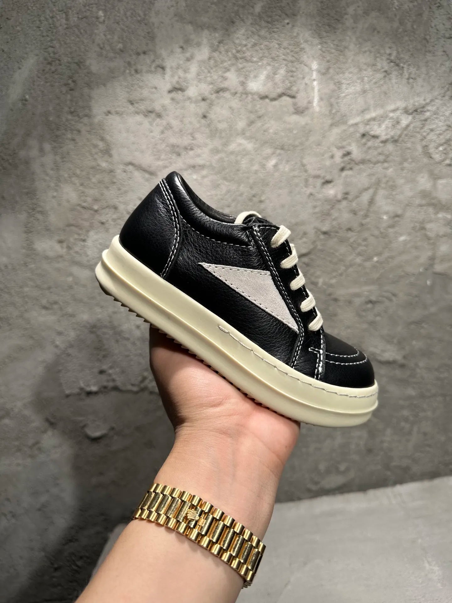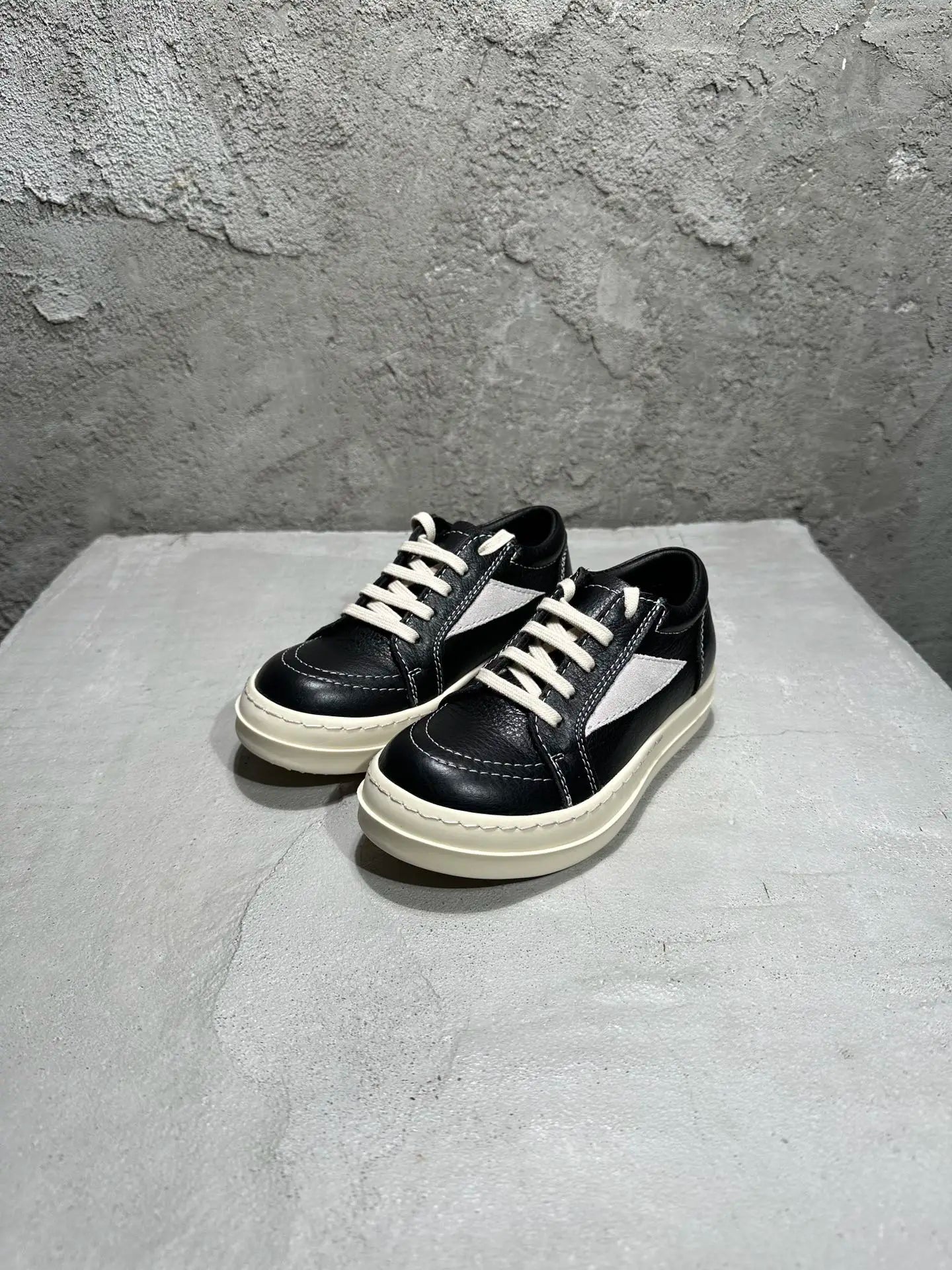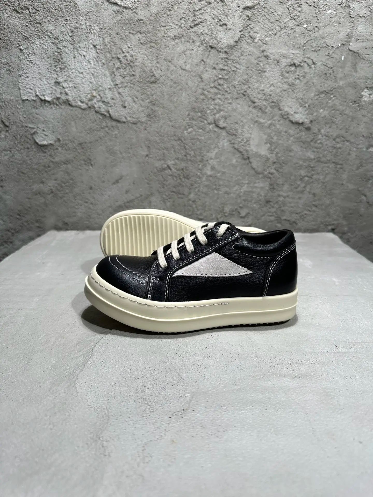 Qvah Owens Kids Sneakers Girls Boys Leather Children Shoes Luxury Lace Up Casual Spring Streetwear Black White Boots