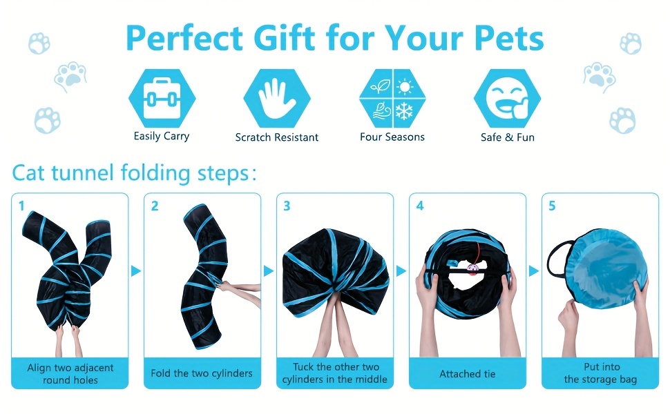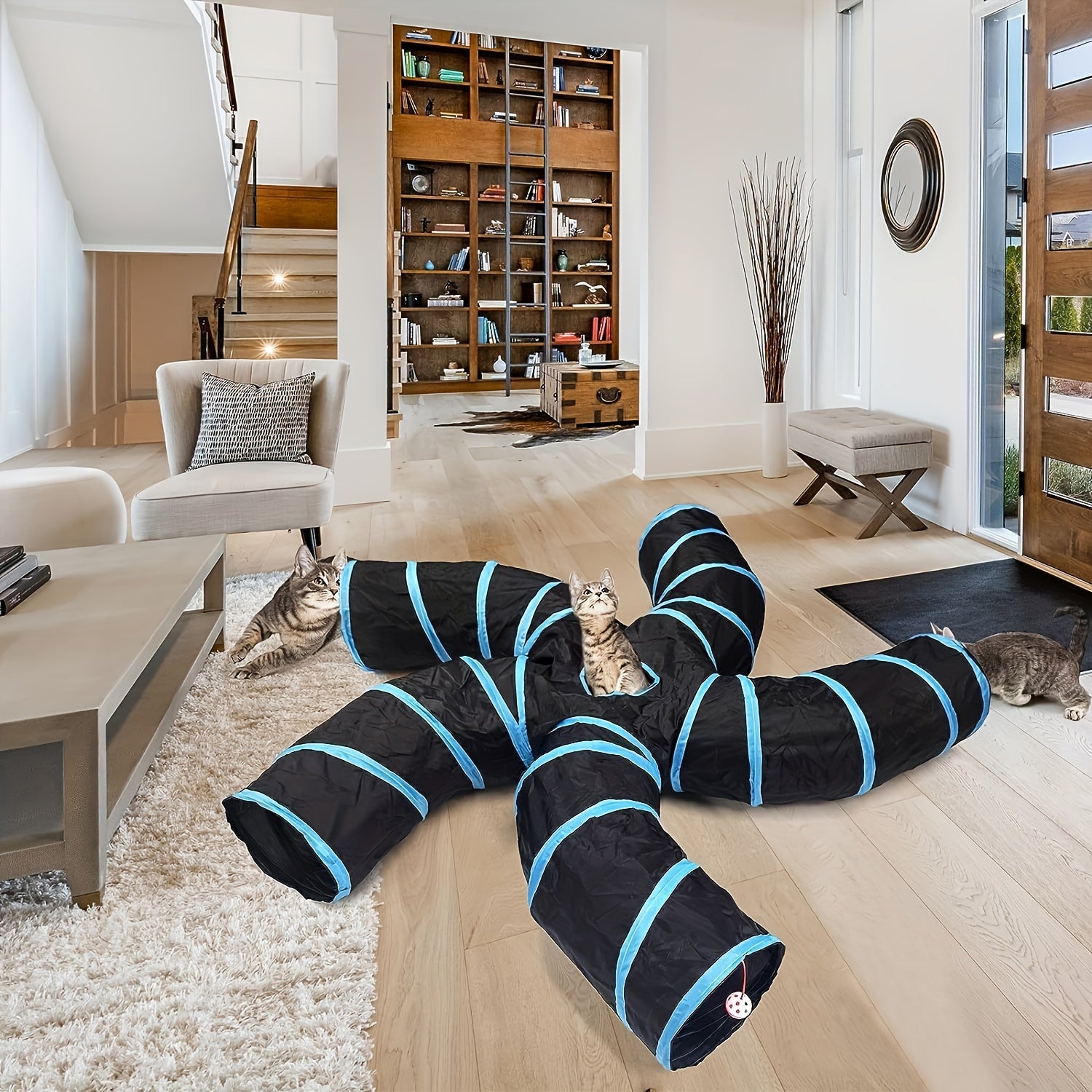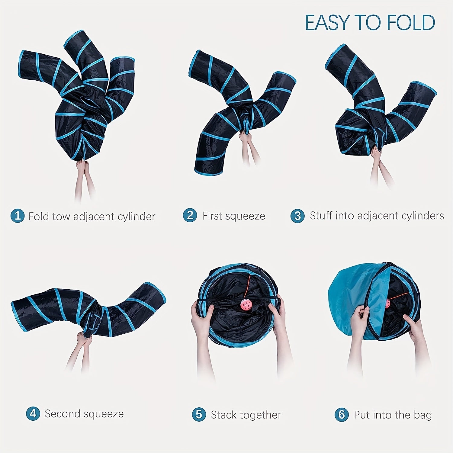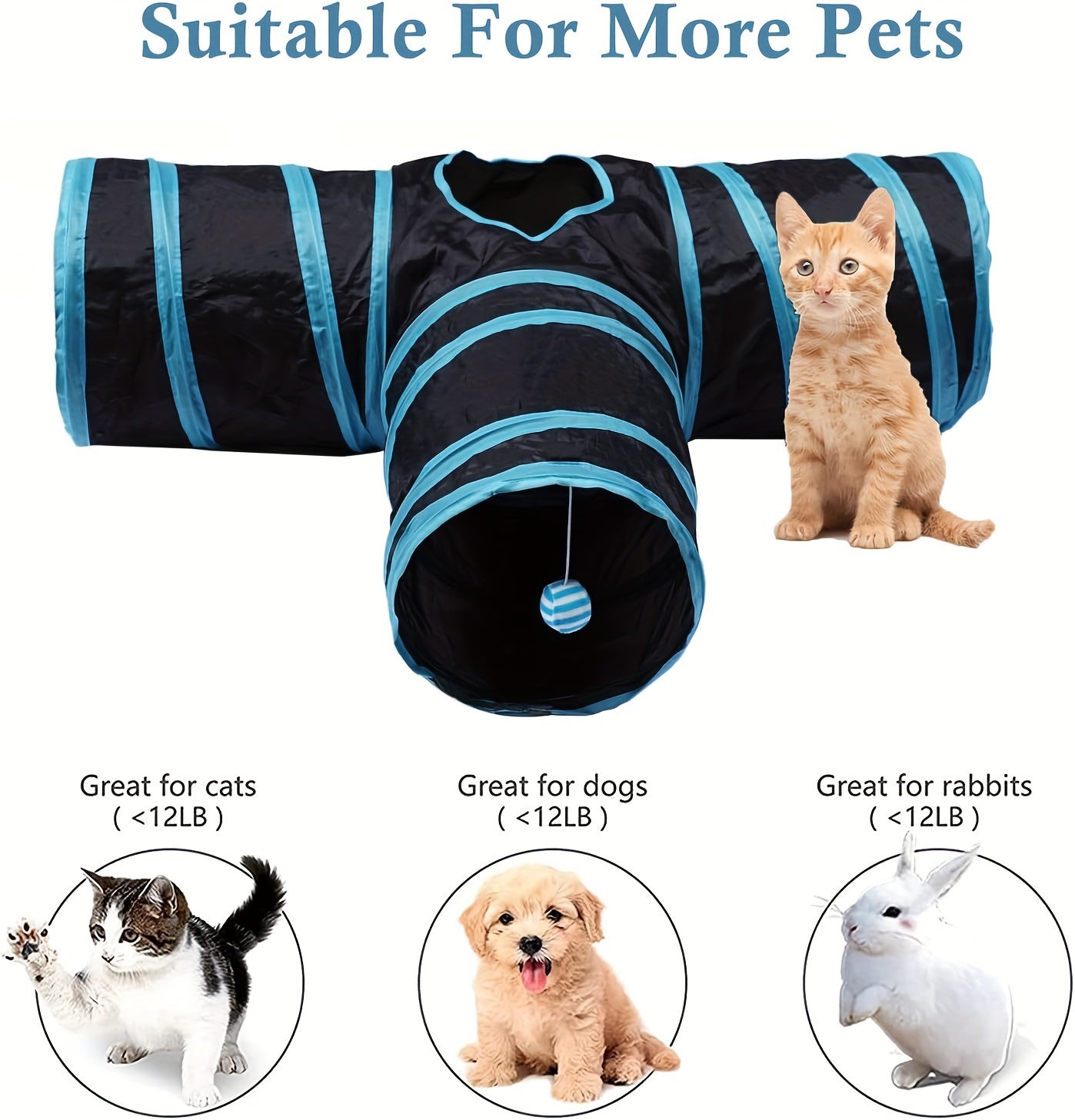 Collapsible Cat Tunnel with Peek Holes Interactive multi-way tunnel with hanging ball toy—foldable, durable, and perfect for indoor fun with cats, kittens, puppies & small pets.🐈🐕