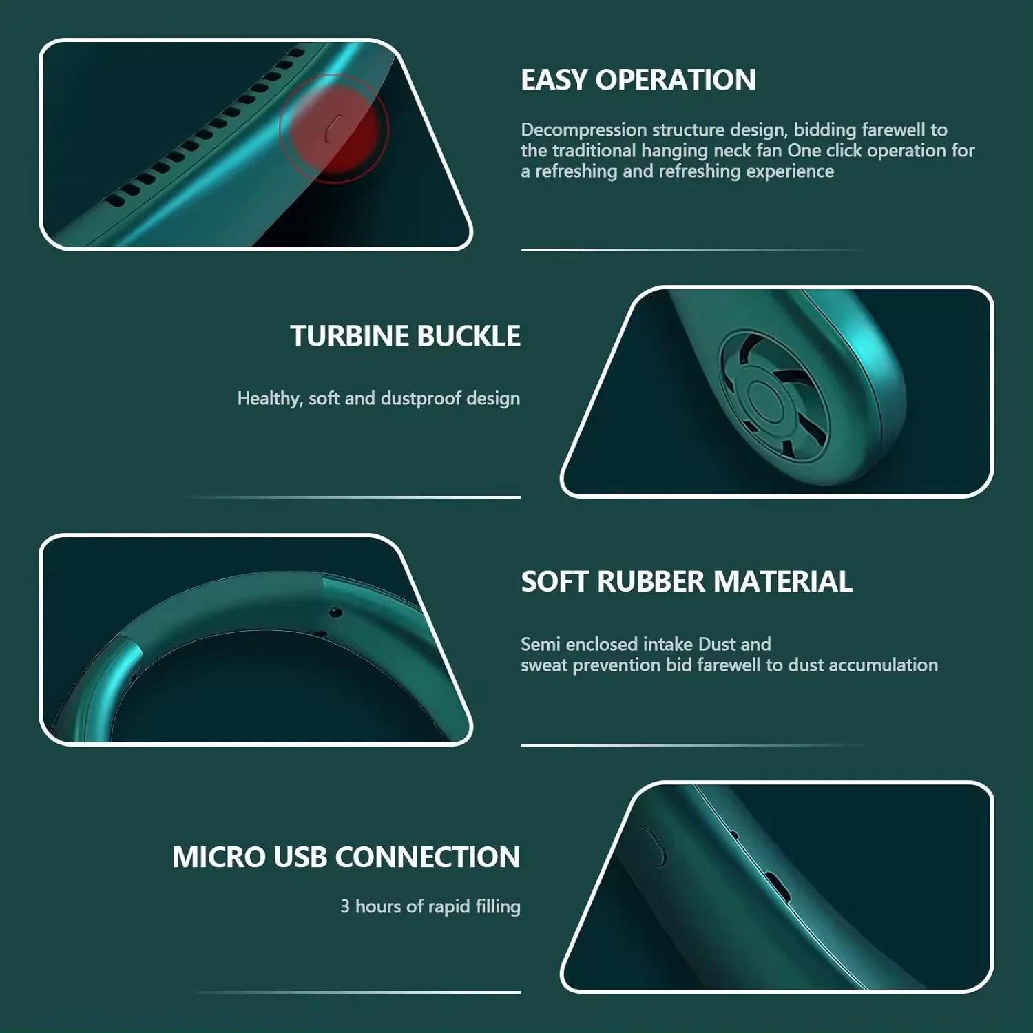 Leafless hanging neck fan, mini portable usb fan, super strong wind, silent natural wind, rechargeable hot sale