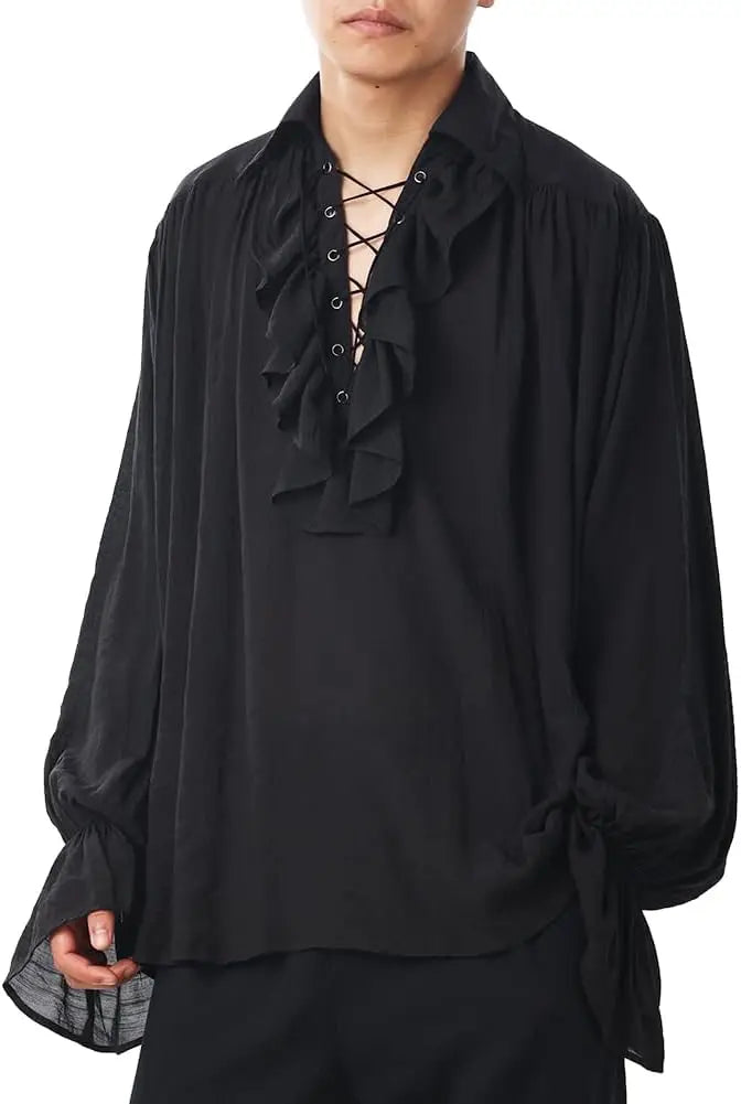 Medieval Halloween Costumes Autumn Casual Shirts Steampunk Cosplay Bandage Long Sleeve Ruffled Shirt Gothic Blouse Tops
