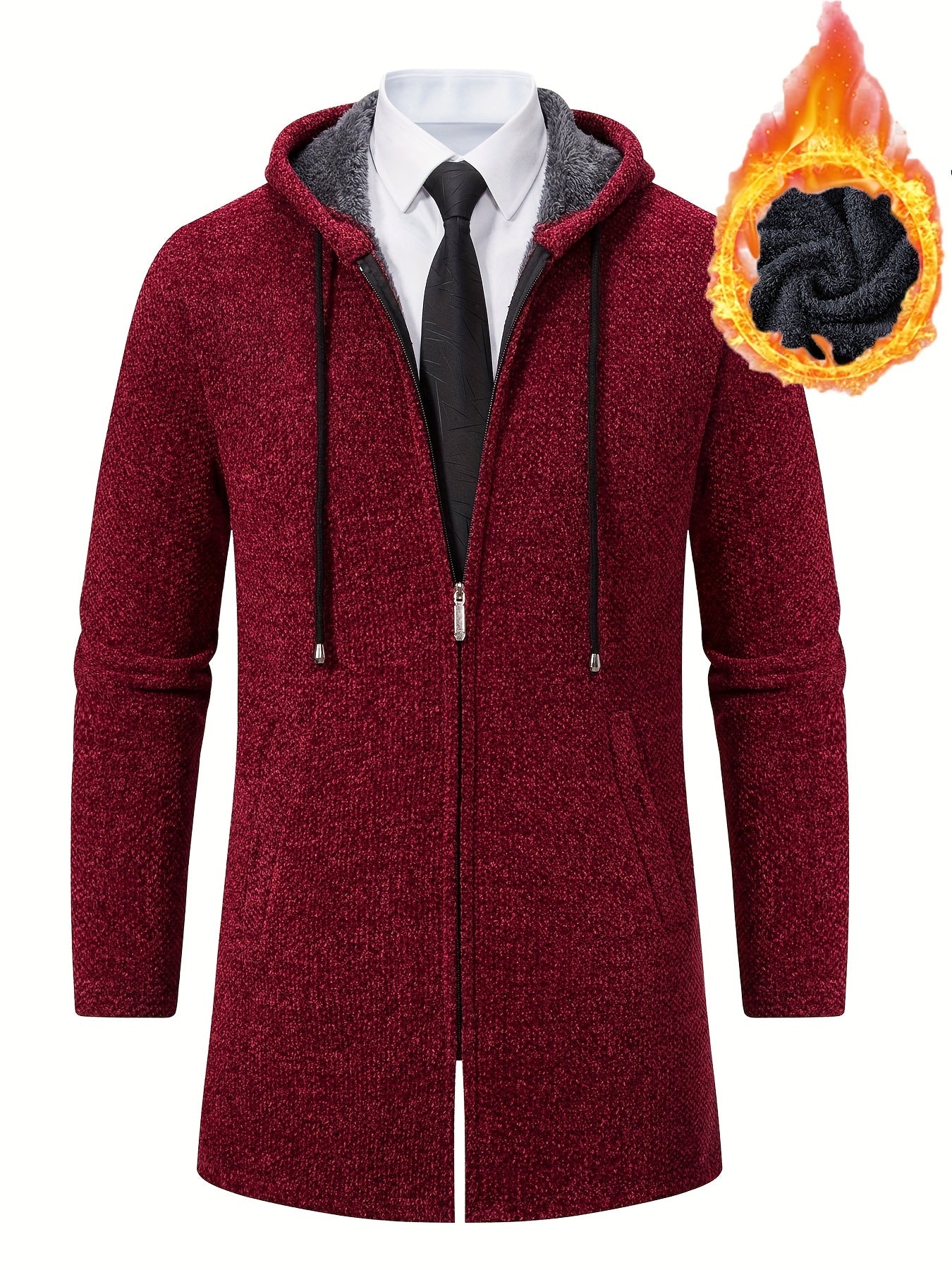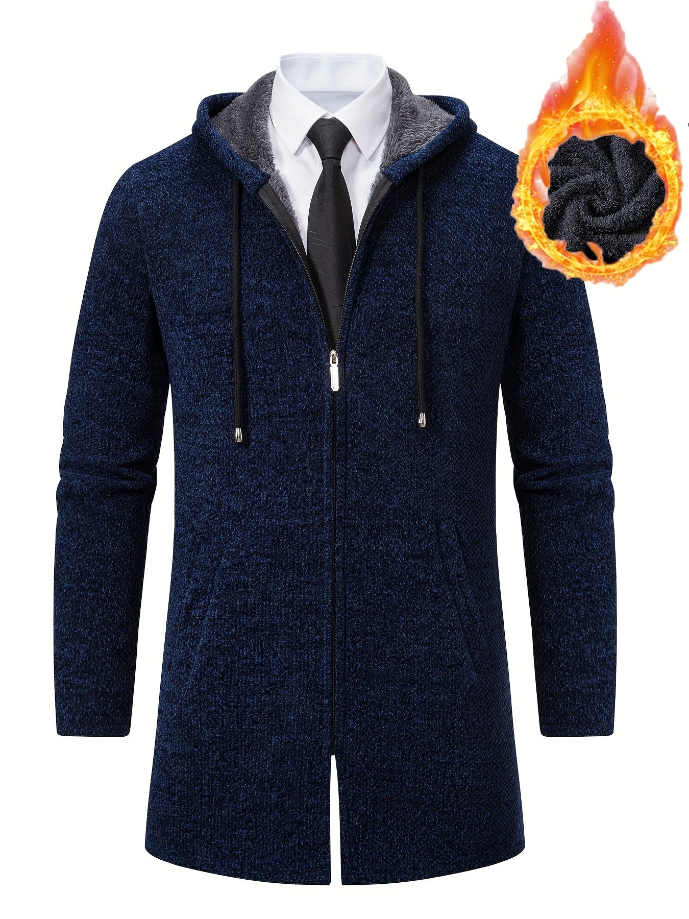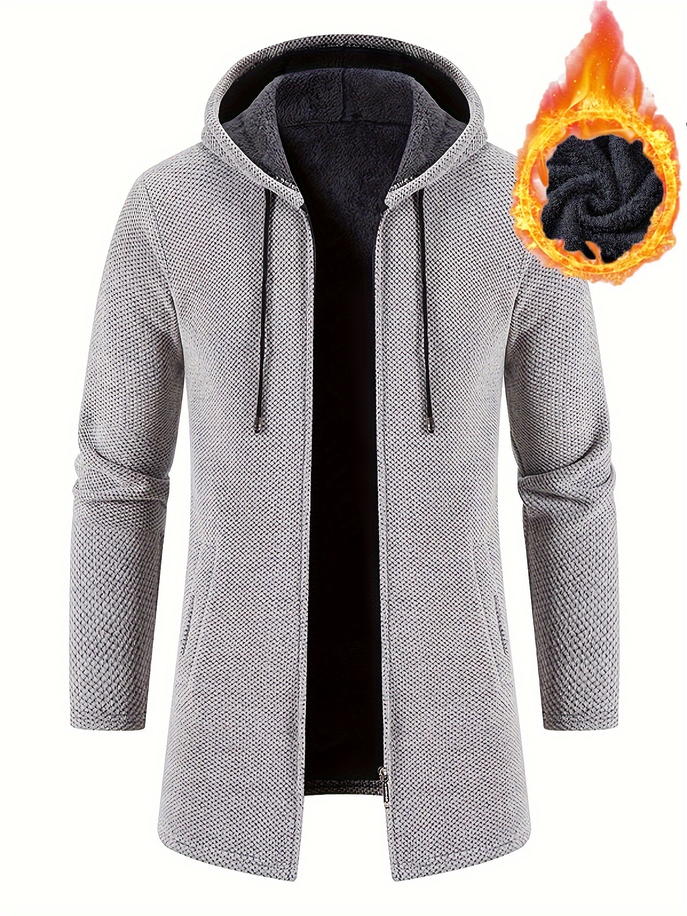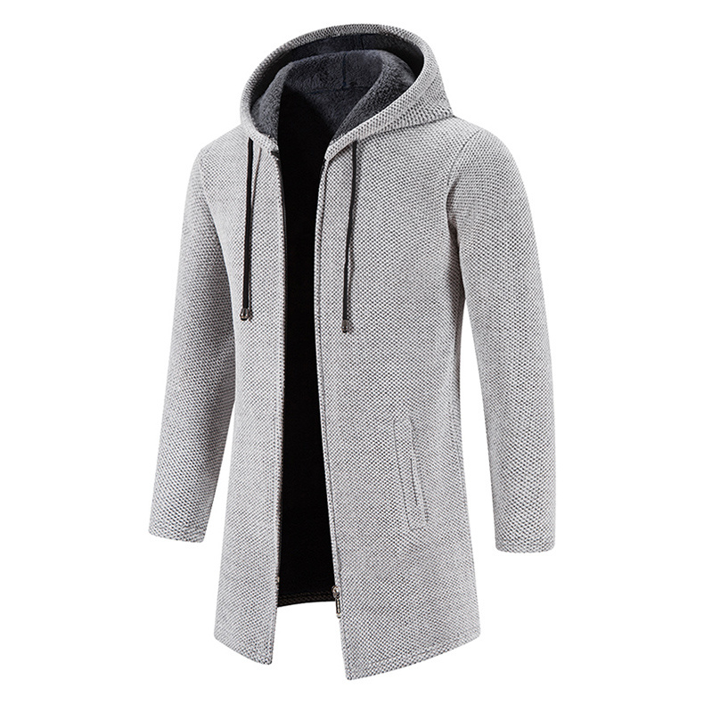 Men's Autumn And Winter Plush Thick Warm Mid Length Hooded Cardigan Best Sellers