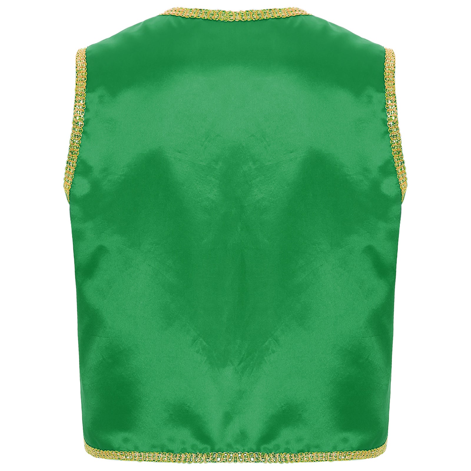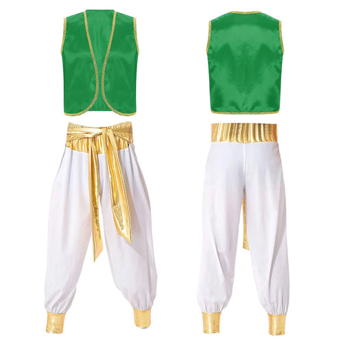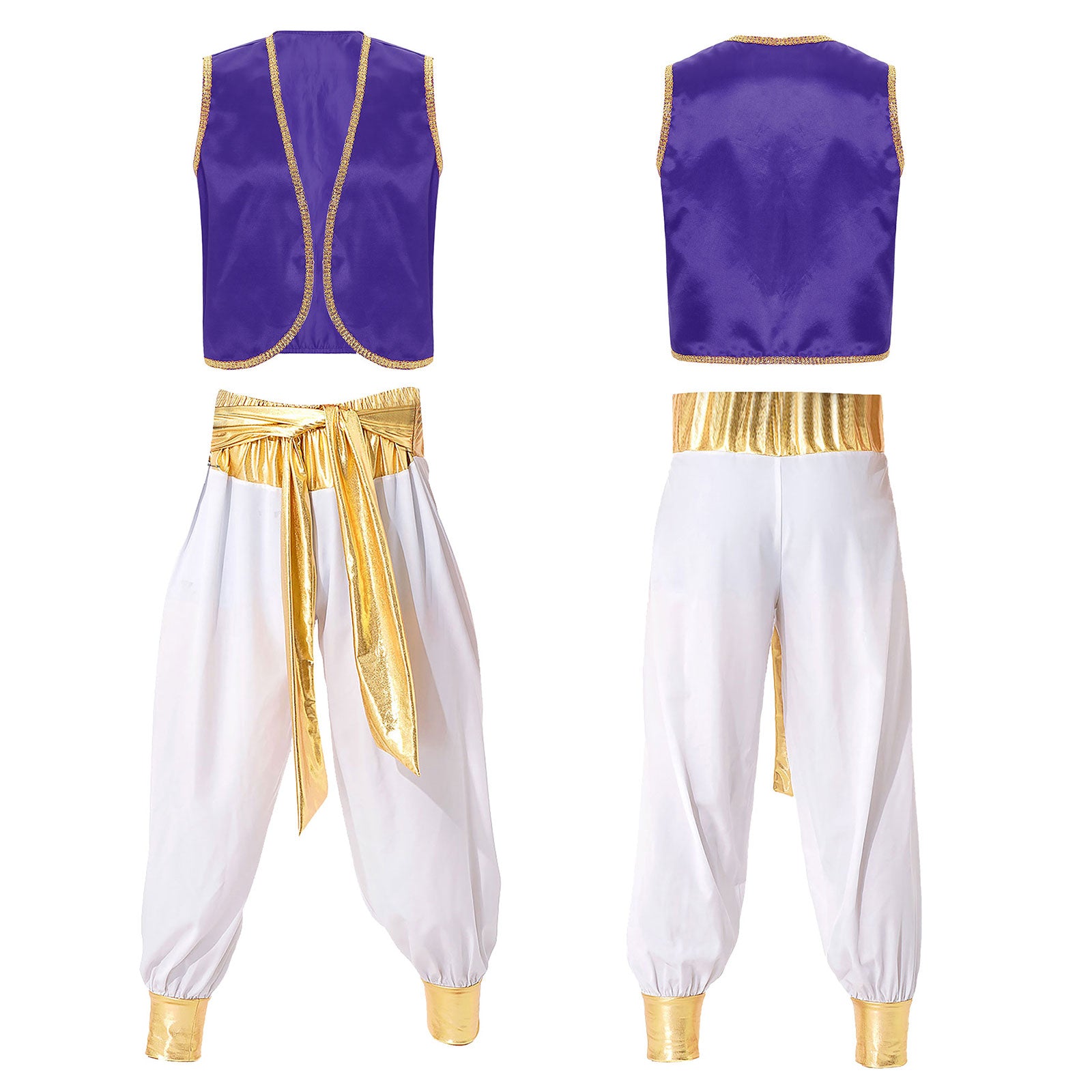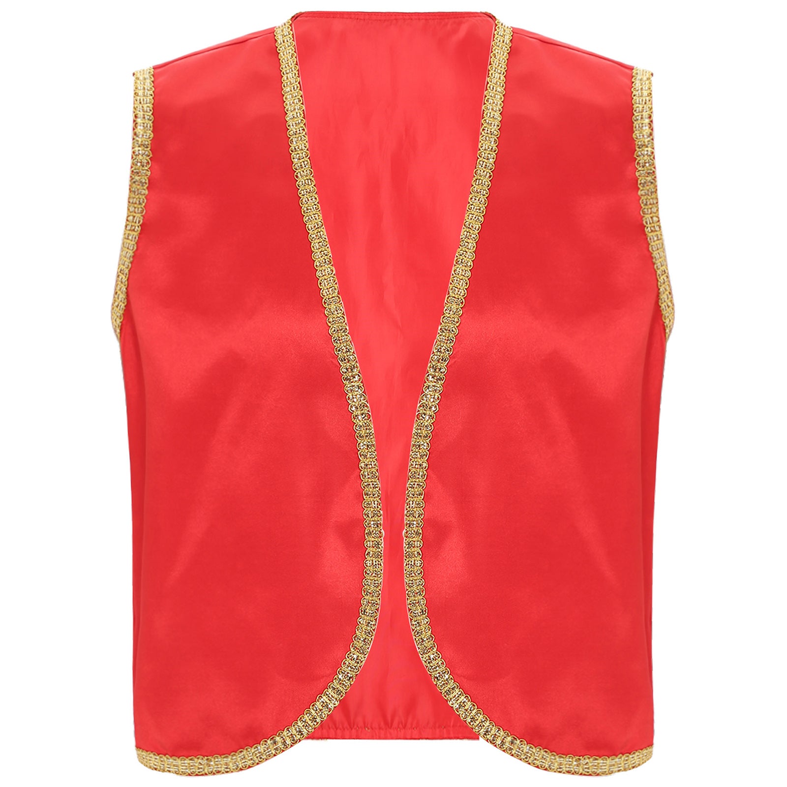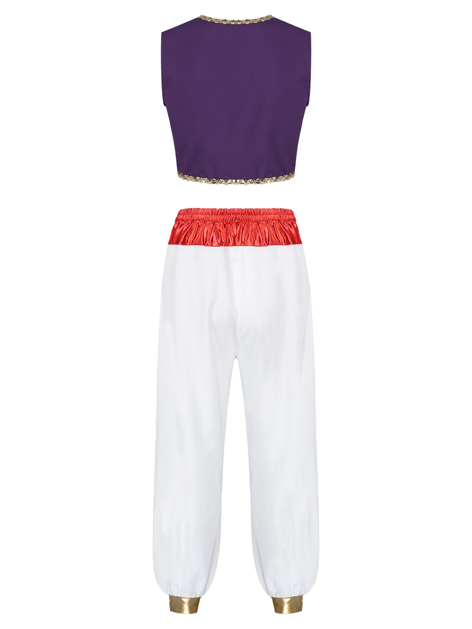 Mythical Aladin Party Cosplay Fancy Dress Outfit: Sequin Trim Waistcoat with Belted Pants