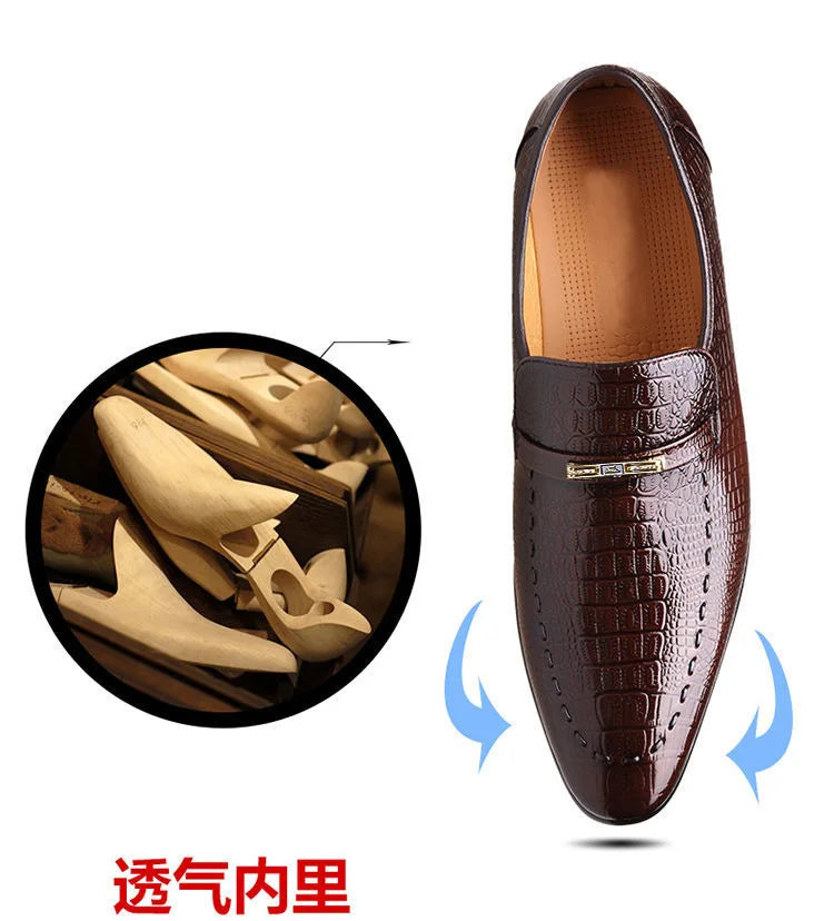 Mens PU Luxury Crocodile Pattern Men Business Dress Shoes Leather Casual Social Shoe Male Wedding Footwear Zapatos Hombre