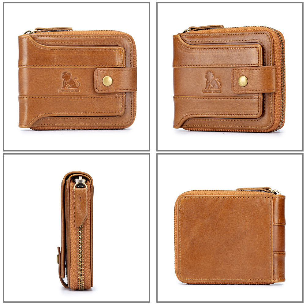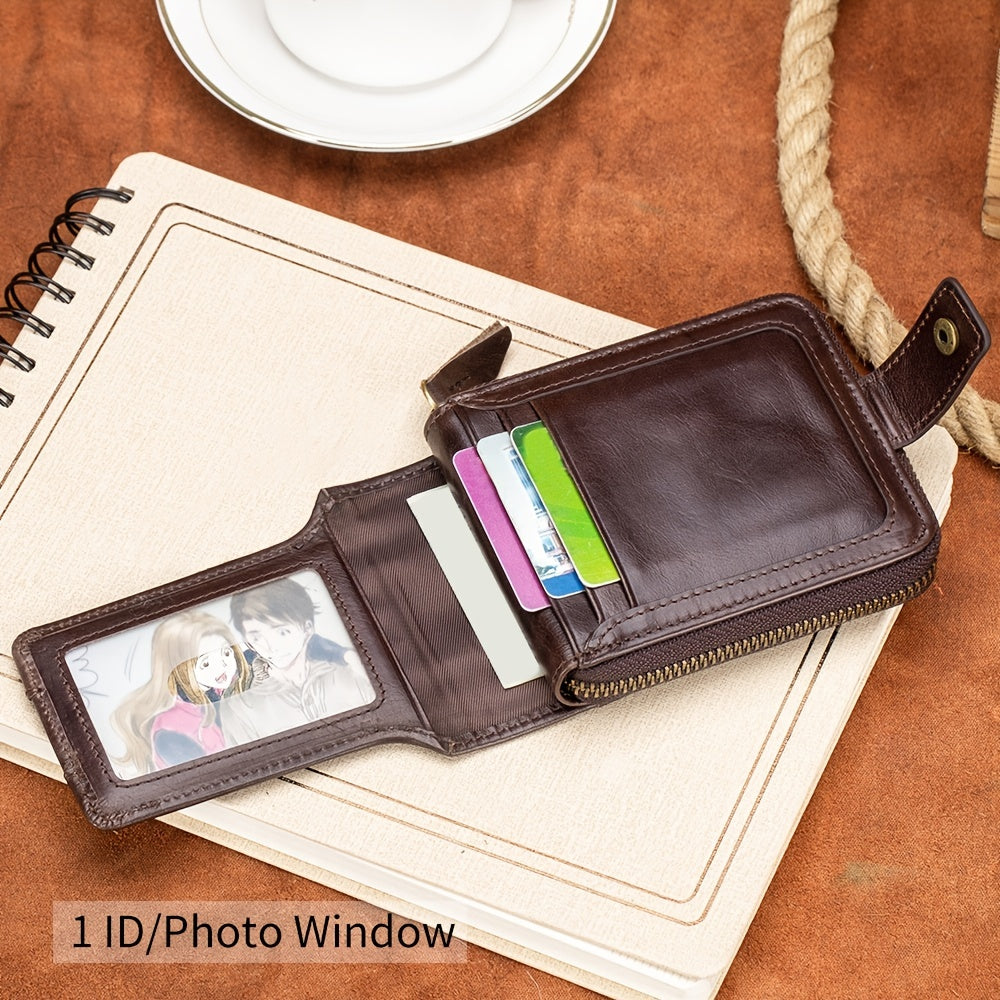 Men's Retro Genuine Leather Multi-Card Wallet with Zip, Large Capacity, Anti-Theft