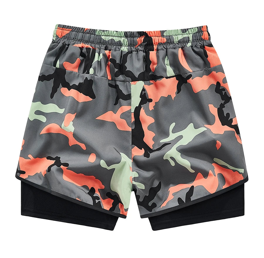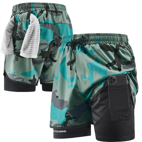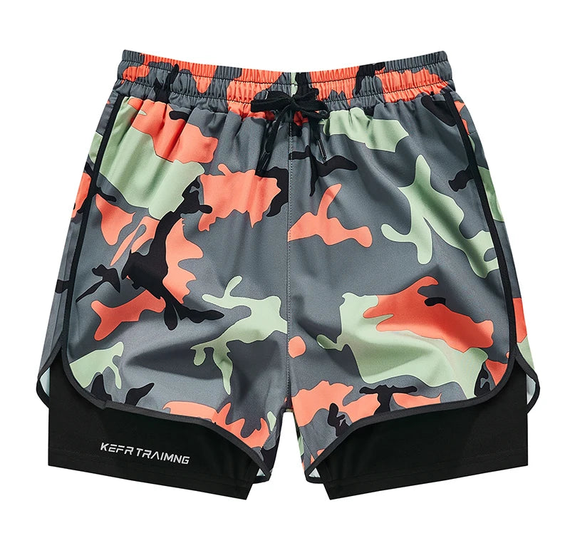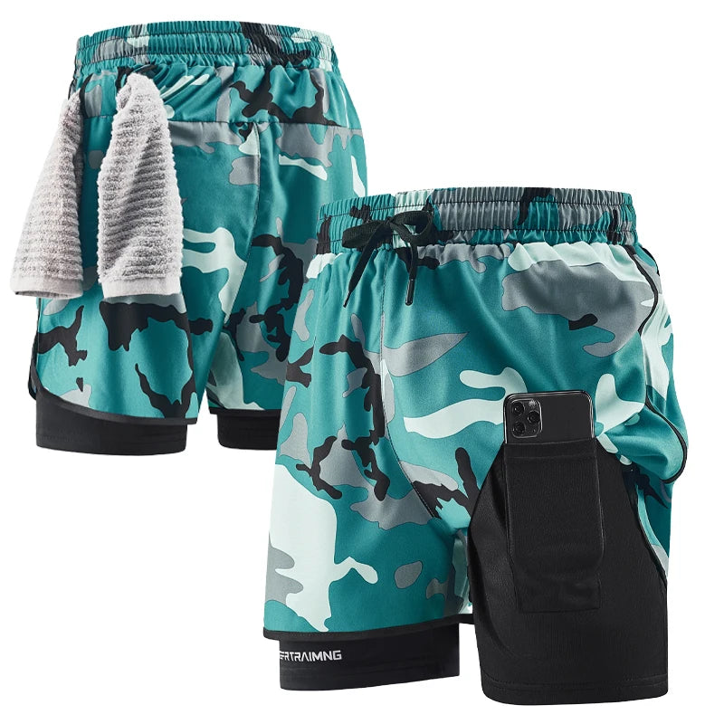 Men's running shorts quick drying fitness camouflage double-layer shorts men's new sports training and bodybuilding shorts