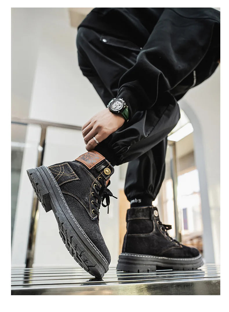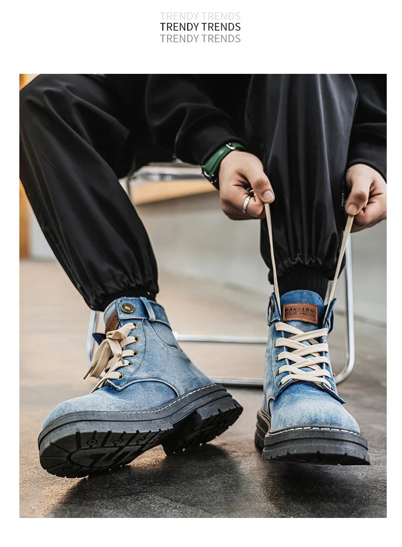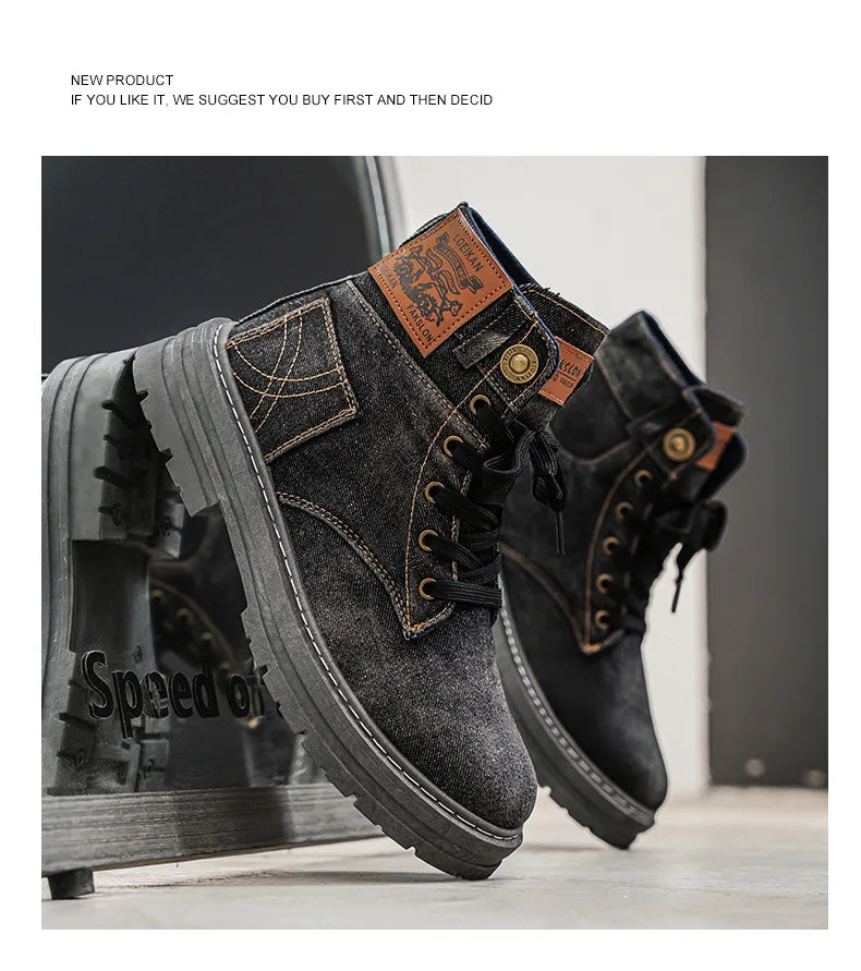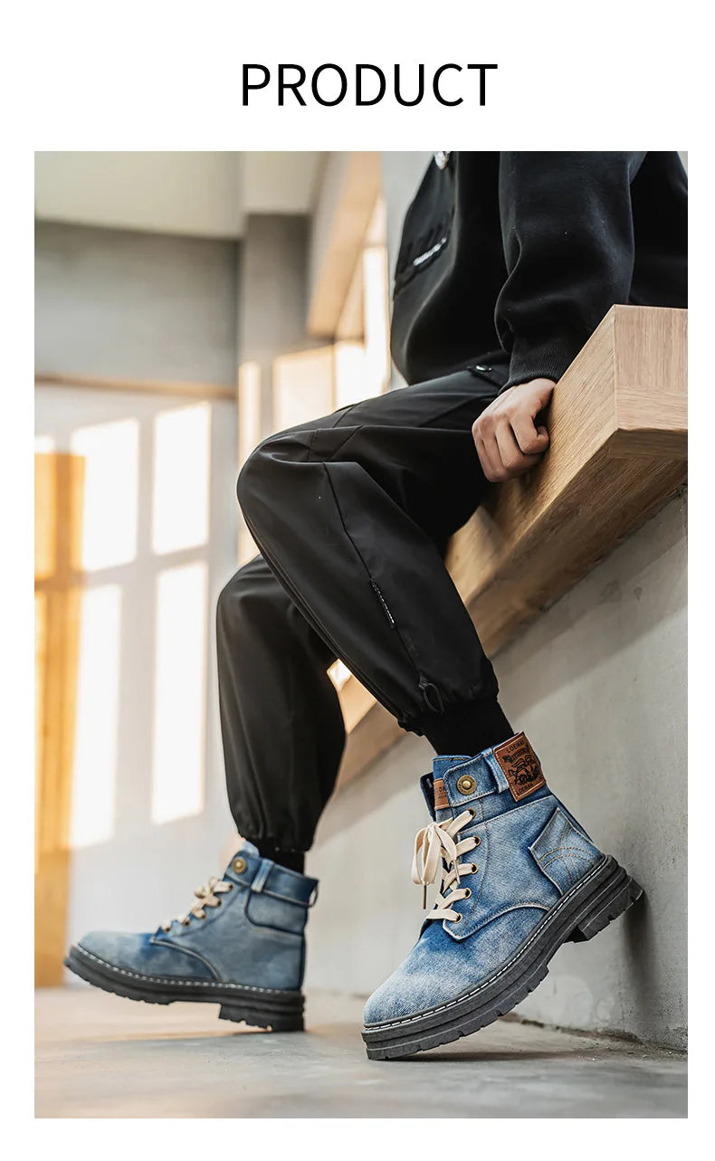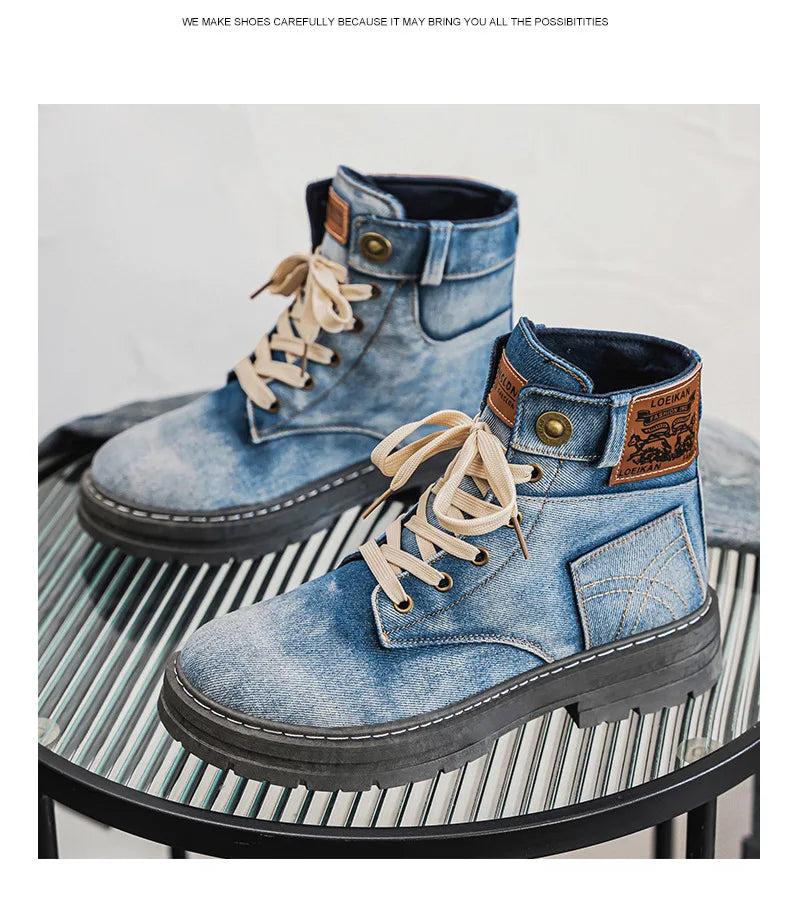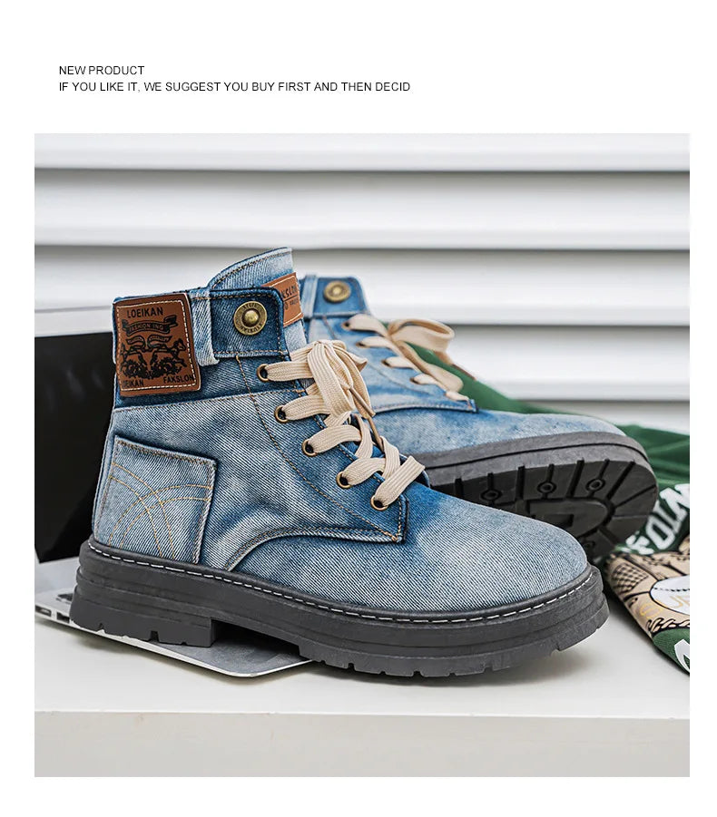 Men's Shoes 2025 Style Height Increase Breathable Mid Top Shoe Fashion Denim Casual Versatile Workwear Shoes Casual Boots Shoes