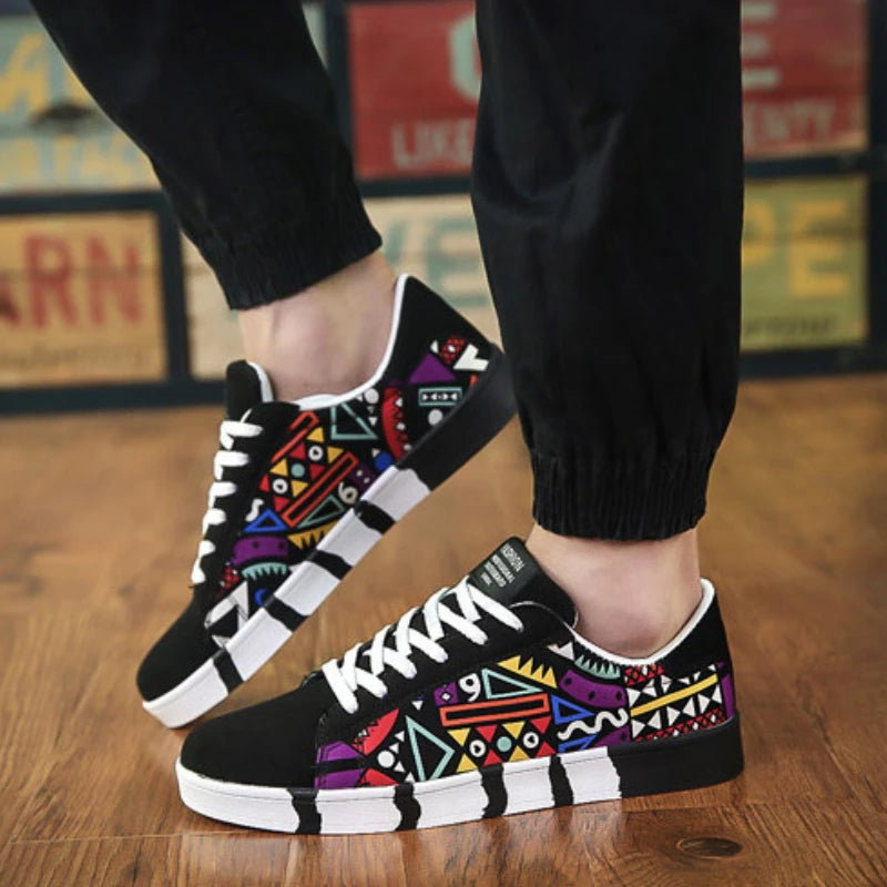 Men's Sneakers Graffiti Canvas Shoes Fashion Black Casual Shoes Lace-up Vulcanized Shoe Designer Flat Men Shoes Tenis Masculino