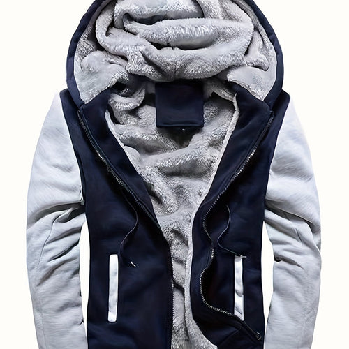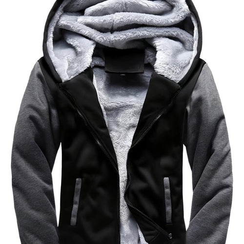 Men'S Winter Thick And Padded Warm Zip Up Hooded Jacket