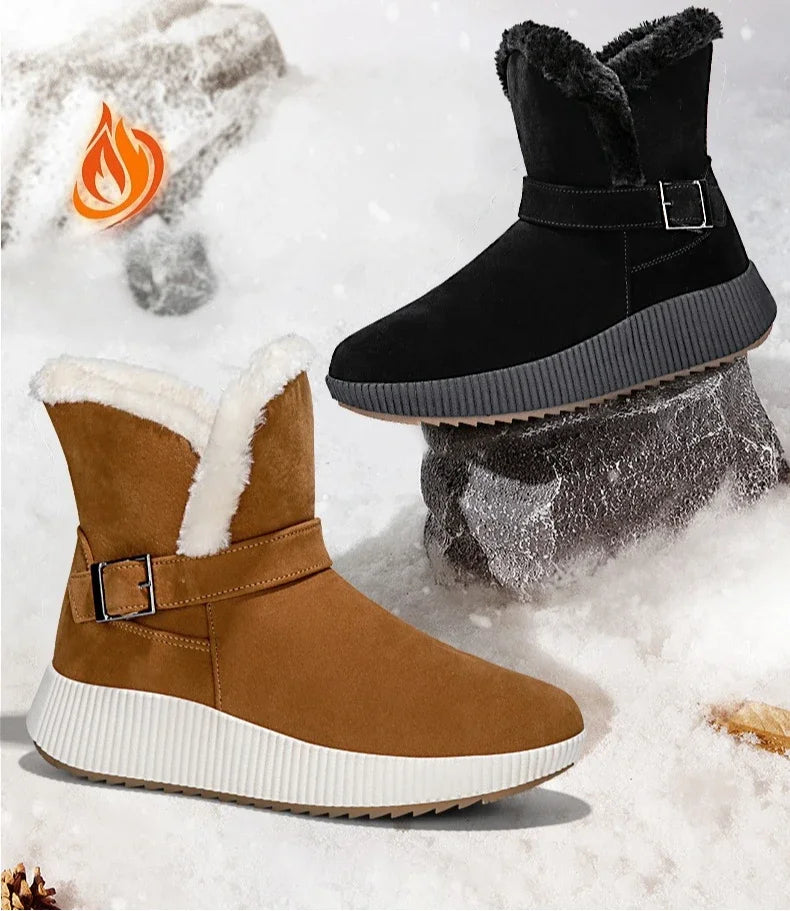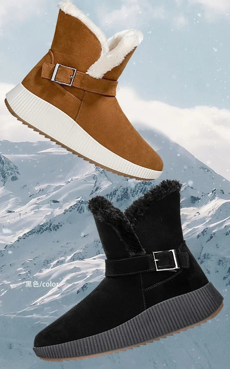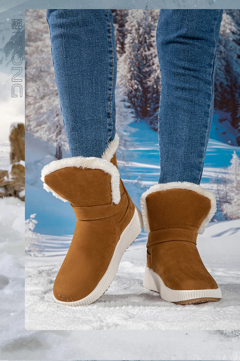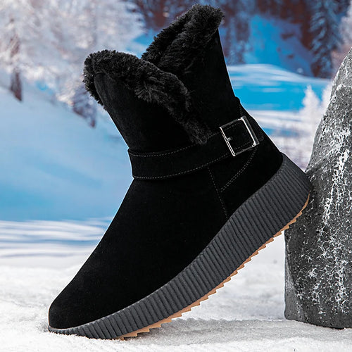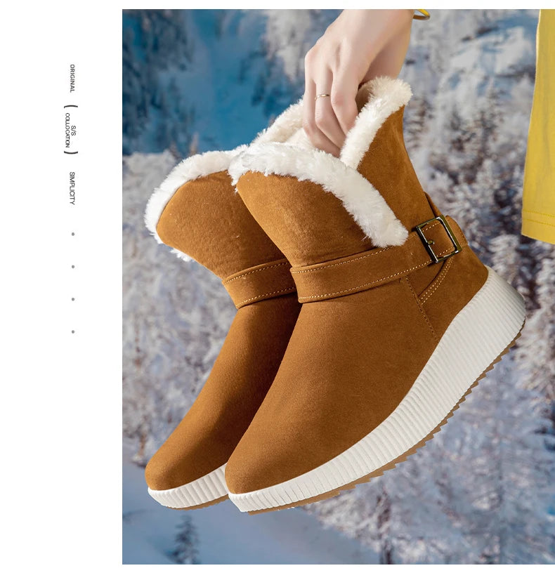 New Fashionable Bow Round Toe Elegant Snow Boots Winter Flat Wear-resistant Soft Students Plus Velvet Warm Women's Shoes