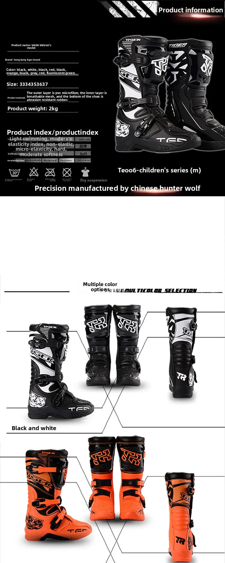 Original Children TIGER Motorcycle Boots ATV Downhill Off-Road Botas Racing Riding Soft Sole Youngster Motocross Boots For Kids