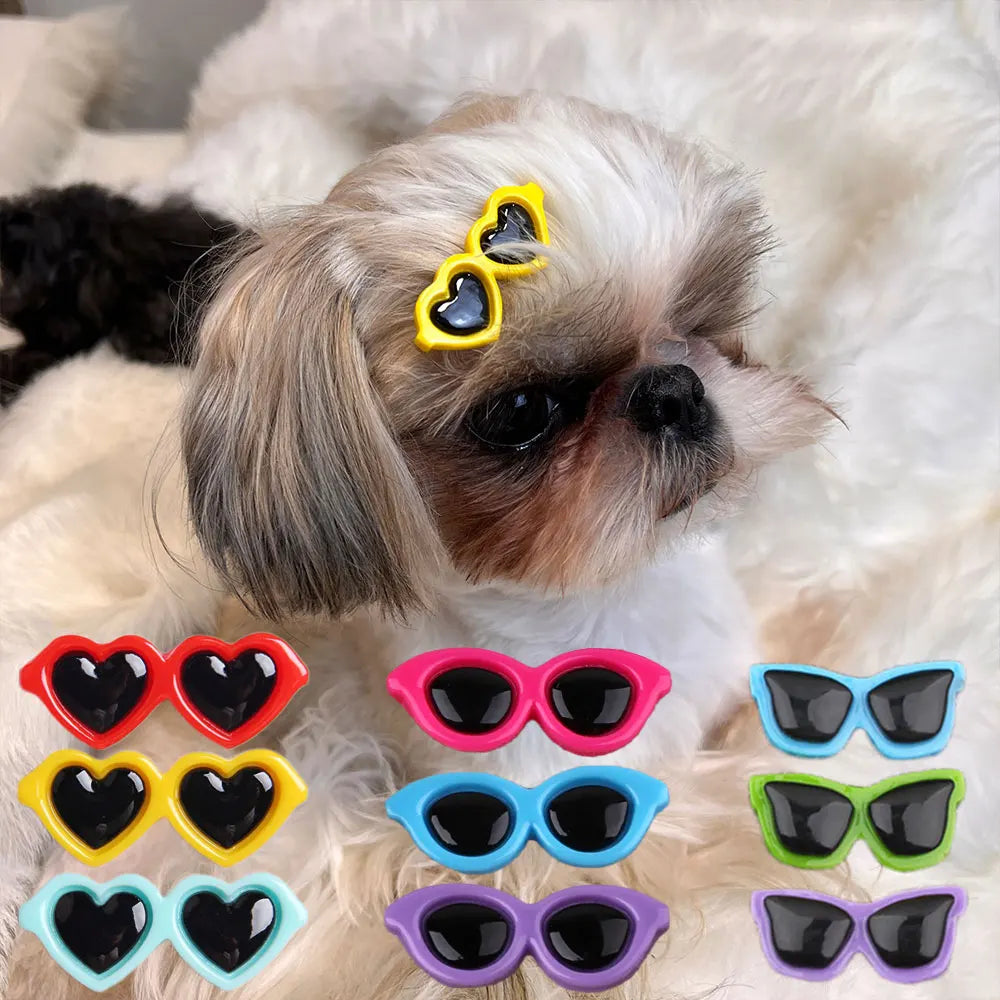 Pet Cute Heart Sunglasses Hairpins Pet Dog Hair Clips Puppy Cat Yorkie Teddy Pet Decor Barrette Hair Accessories For Small Dogs