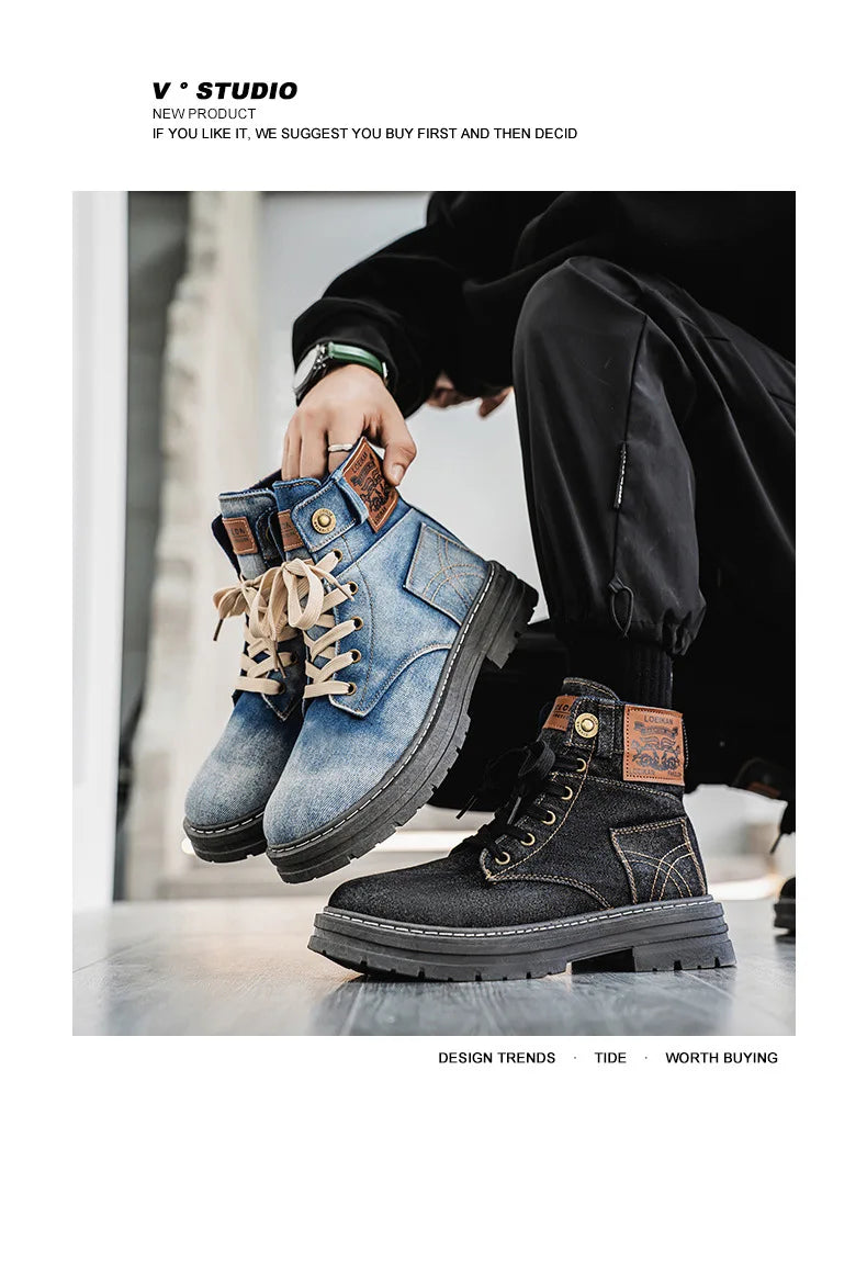 Retro Denim Boots Men: 2025 New Men's Classic Sneakers